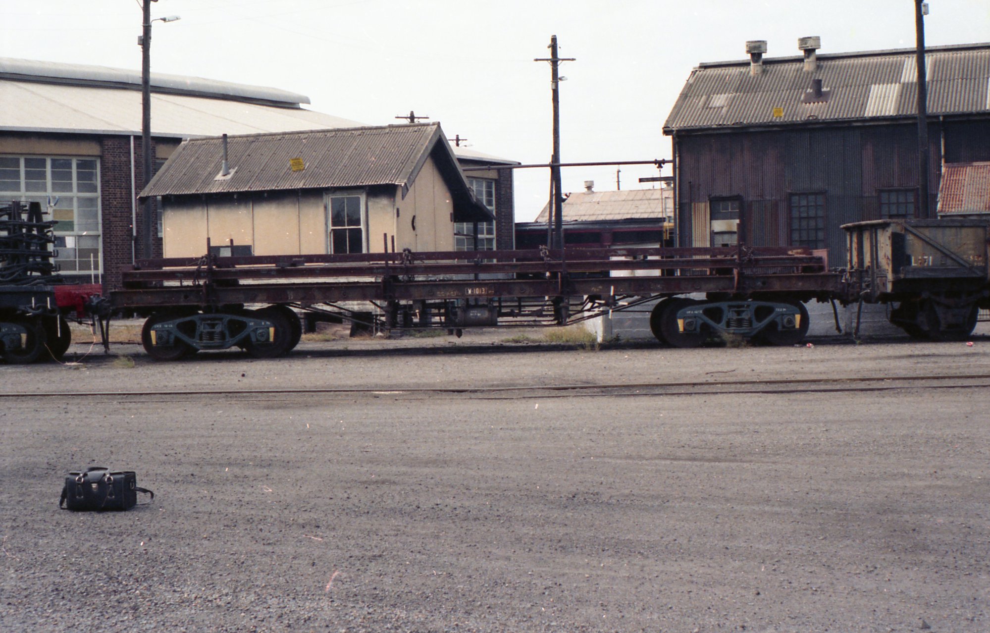 Sansom, Peter, Bogie flat wagon of uncertain parentage on the breakdown train at Broadmeadow Loco., [0047_broadmeadow_sansom]. Living Histories, accessed 09/03/2026, https://livinghistories.newcastle.edu.au/nodes/view/66292
