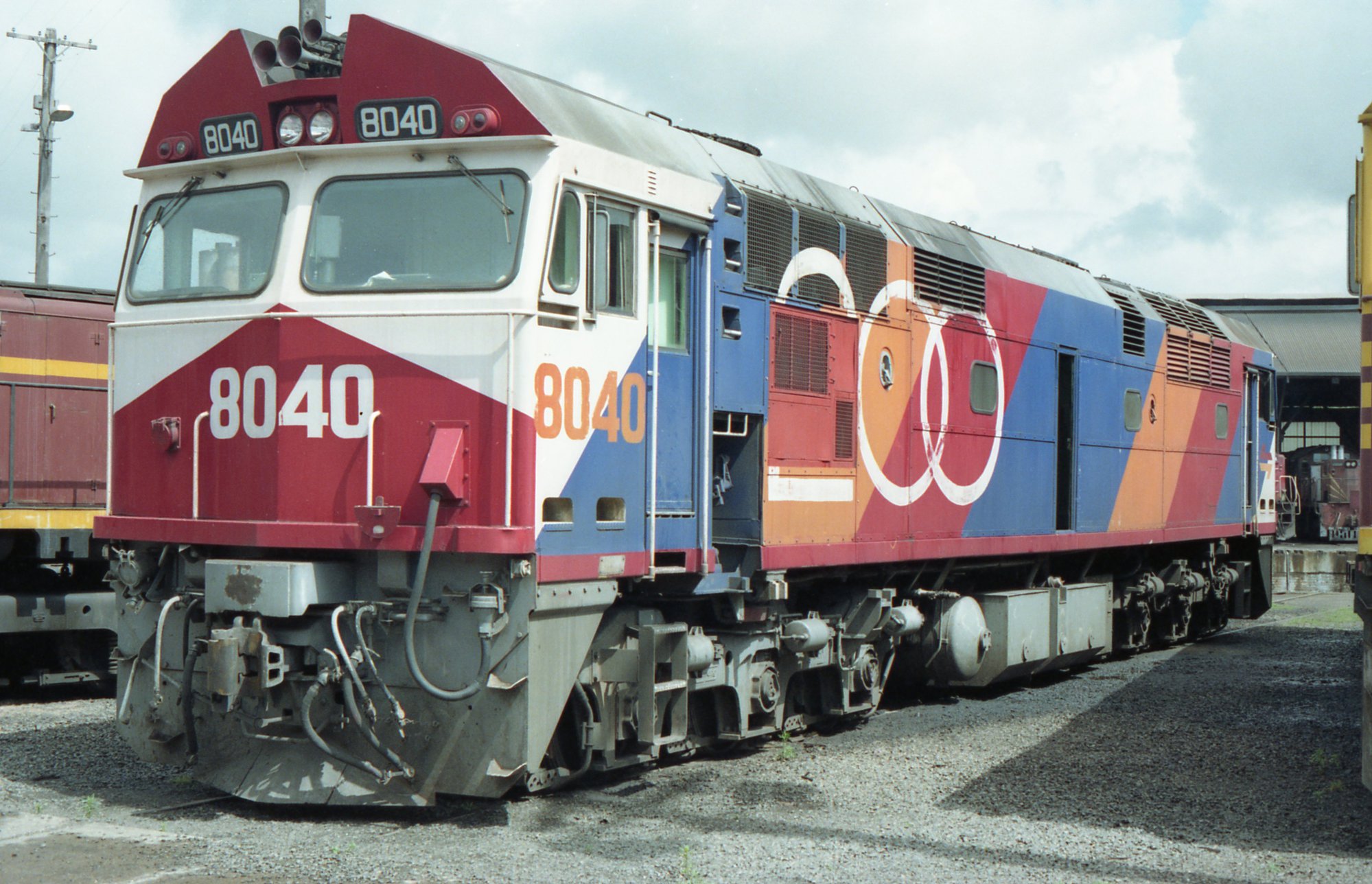 Sansom, Peter, Bicentennial coloured 8040 in Broadmeadow Loco., [0276_broadmeadow_sansom]. Living Histories, accessed 07/02/2026, https://livinghistories.newcastle.edu.au/nodes/view/66539