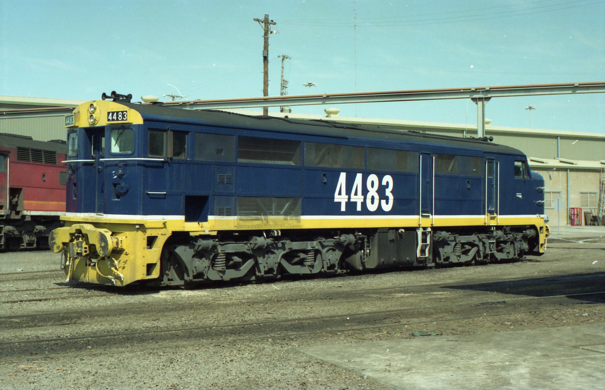 Sansom, Peter, 4483 stands in the paddock at Two Shed, Broadmeadow Loco., [0290_broadmeadow_sansom]. Living Histories, accessed 19/03/2026, https://livinghistories.newcastle.edu.au/nodes/view/66553