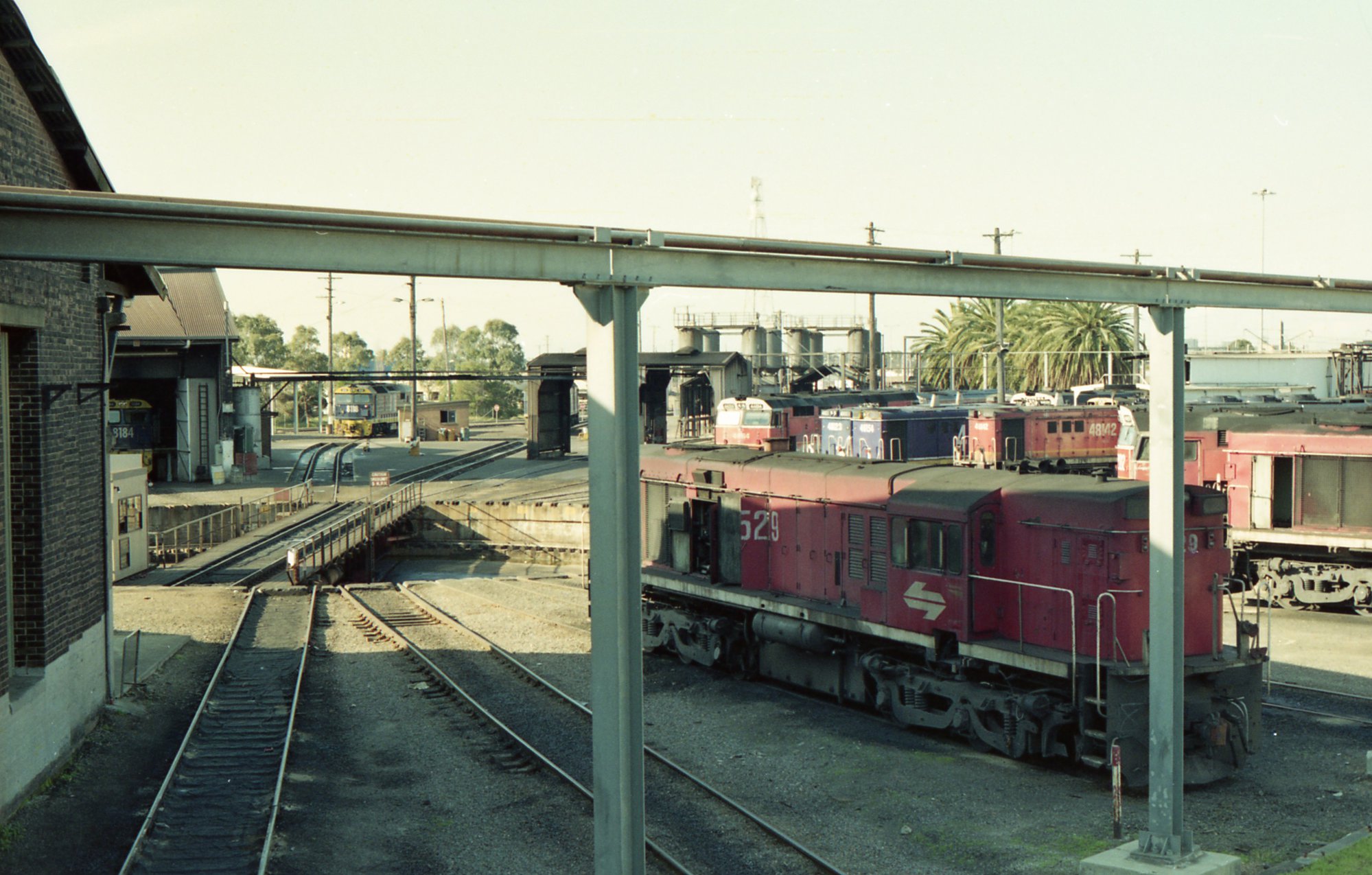 Looking from the spray shed toward the turntable and the departure roads at Two Shed, Broadmeadow Loco, late 1994.