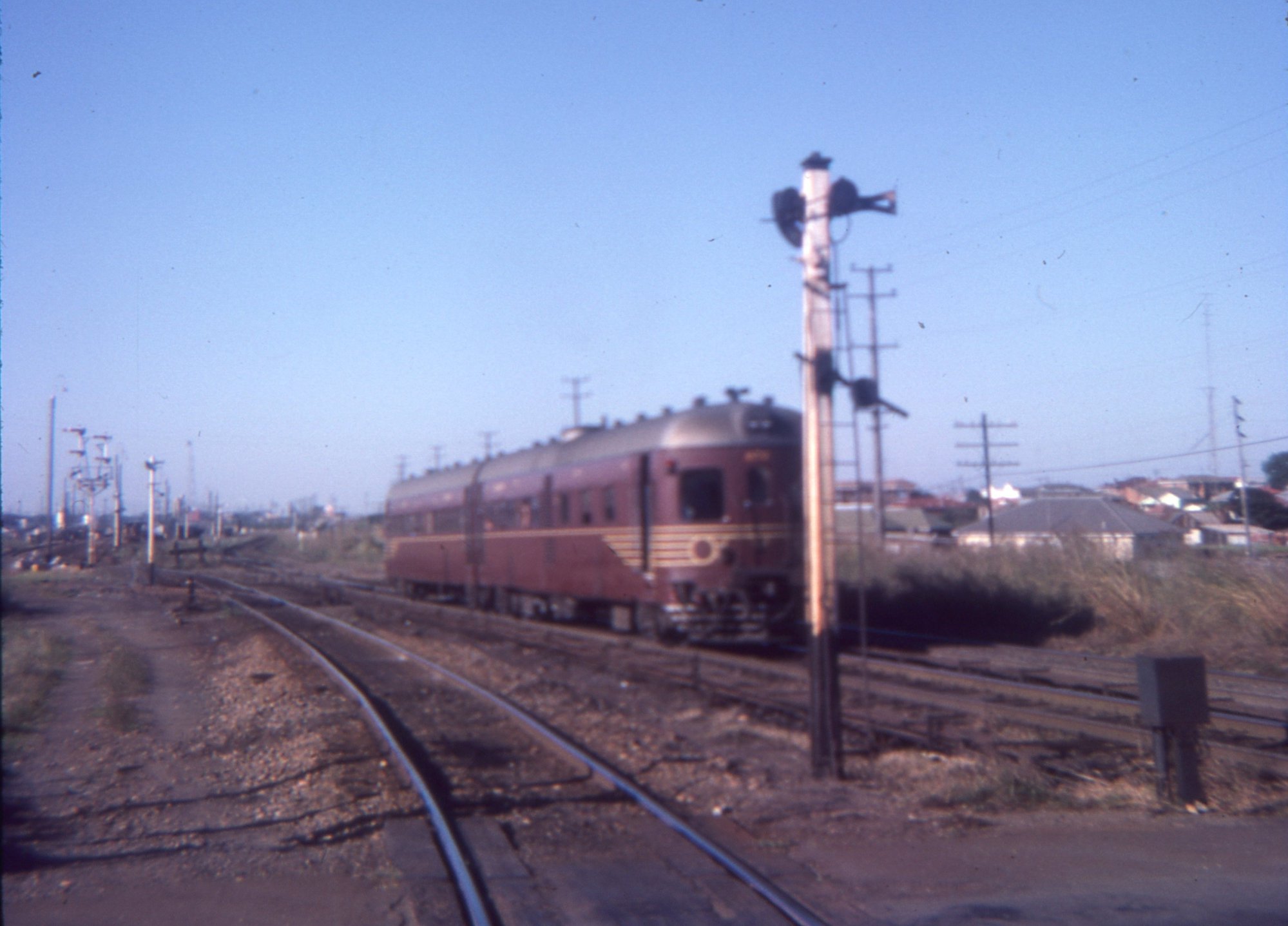A 660-760 class railmotor passes through Adamstown on its way to Newcastle, NSW