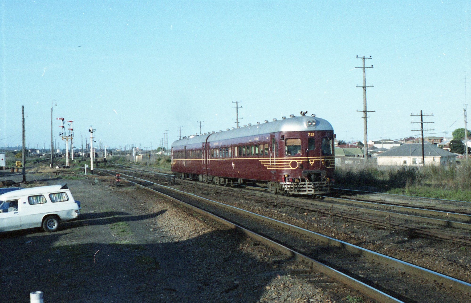 621-721 on an up passenger, passing Broadmeadow Yard, late 1979.
