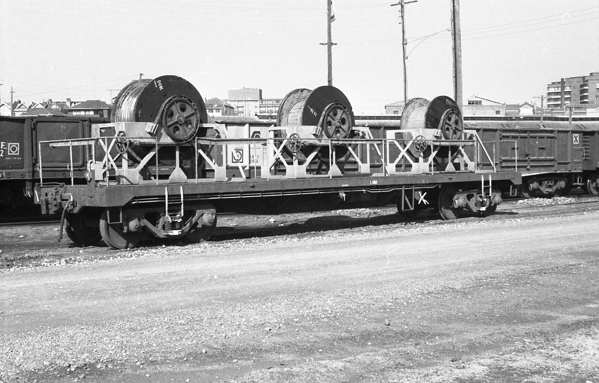 Sansom, Peter, Wire truck used for overhead wiring train seen at Newcastle Yard., [0491_broadmeadow_sansom]. Living Histories, accessed 07/03/2026, https://livinghistories.newcastle.edu.au/nodes/view/66754