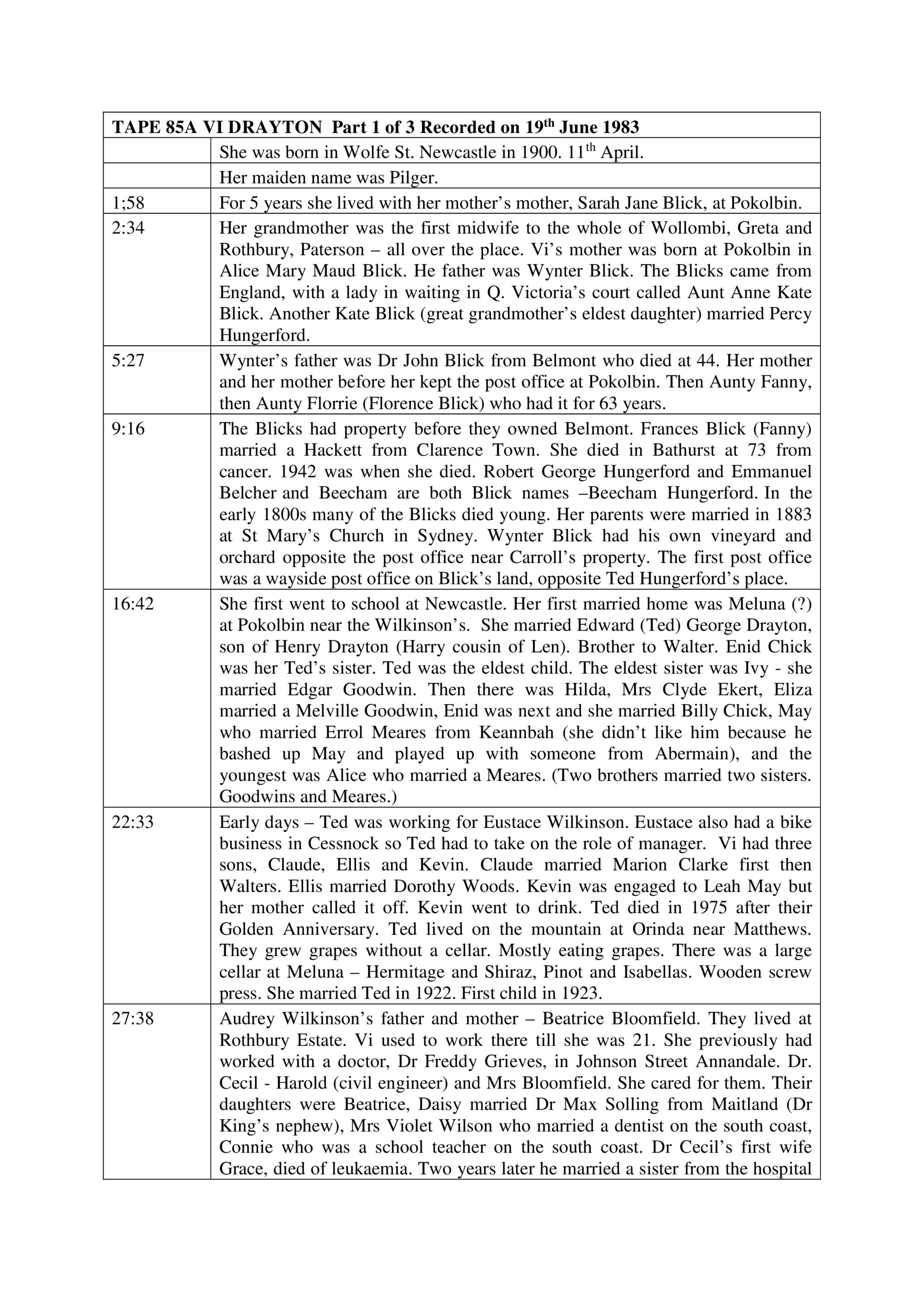 Summary: Vivien Drayton, née Pilger (1900-) - Wife of vigneron. Part 1/3. 19 June 1983., [085A]. Living Histories, accessed 20/01/2026, https://livinghistories.newcastle.edu.au/nodes/view/66875