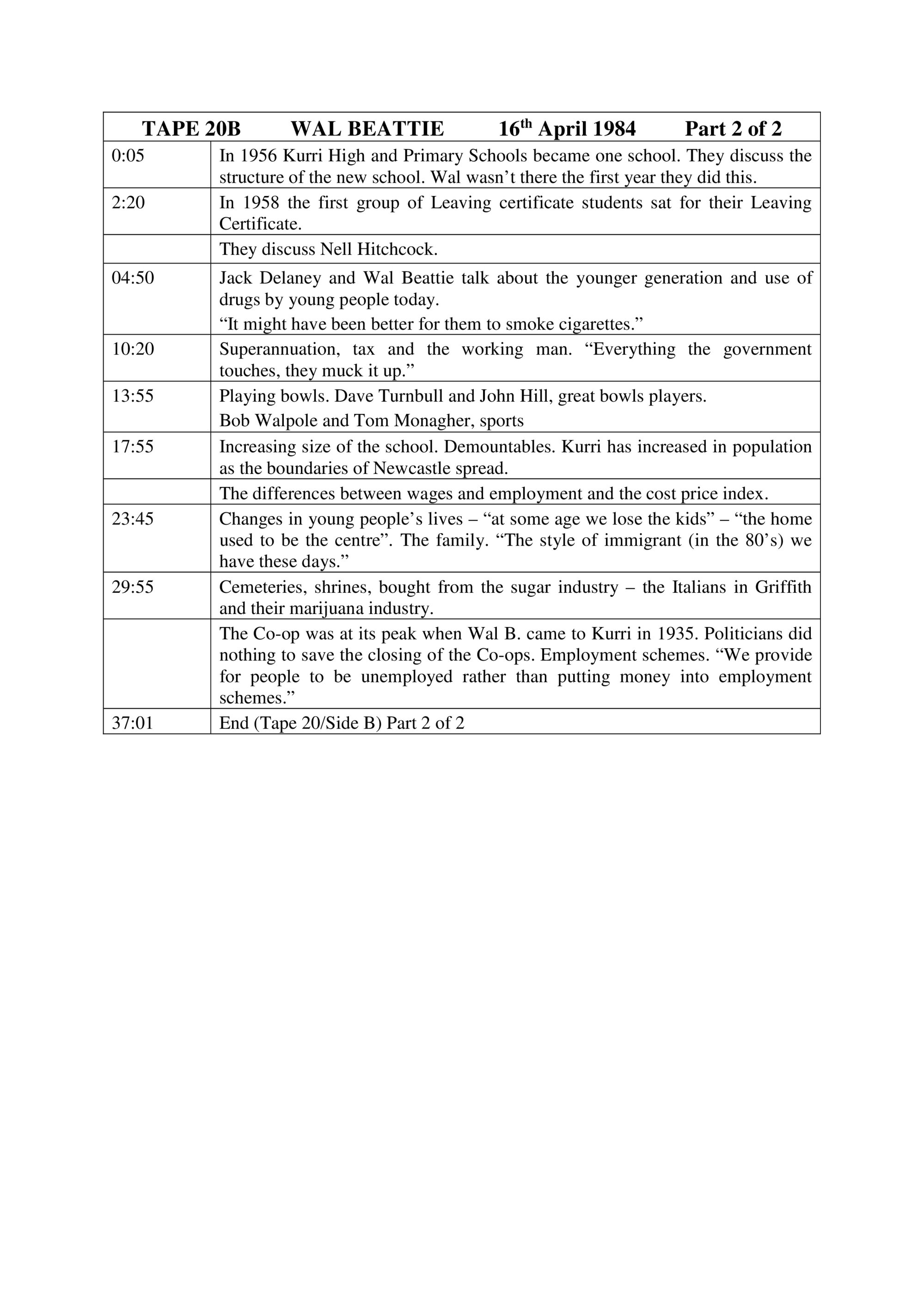 Summary: Wal Beattie - Kurri Teacher. Part 2/2. 16 April 1984.