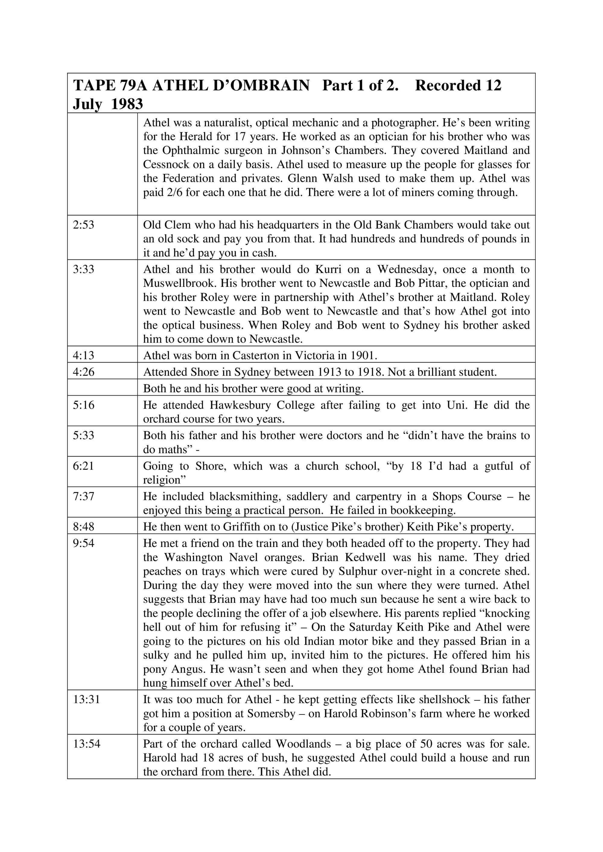 Summary: Athel D'Ombrain (1901-1985) - optical dispenser, naturalist, photographer. Part 1/2. 12 July 1983, [079A]. Living Histories, accessed 15/02/2026, https://livinghistories.newcastle.edu.au/nodes/view/67014
