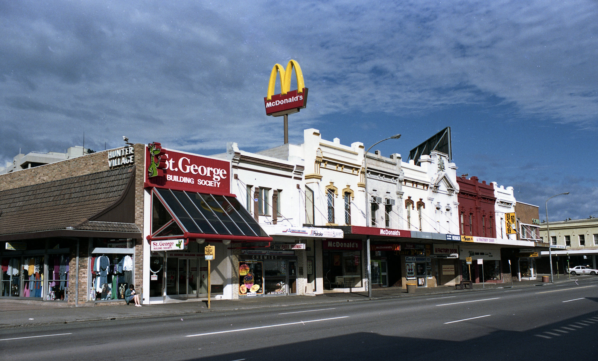 Hunter Village St George Building Society, McDonalds, Hunter Street, Newcastle, NSW, May 1986