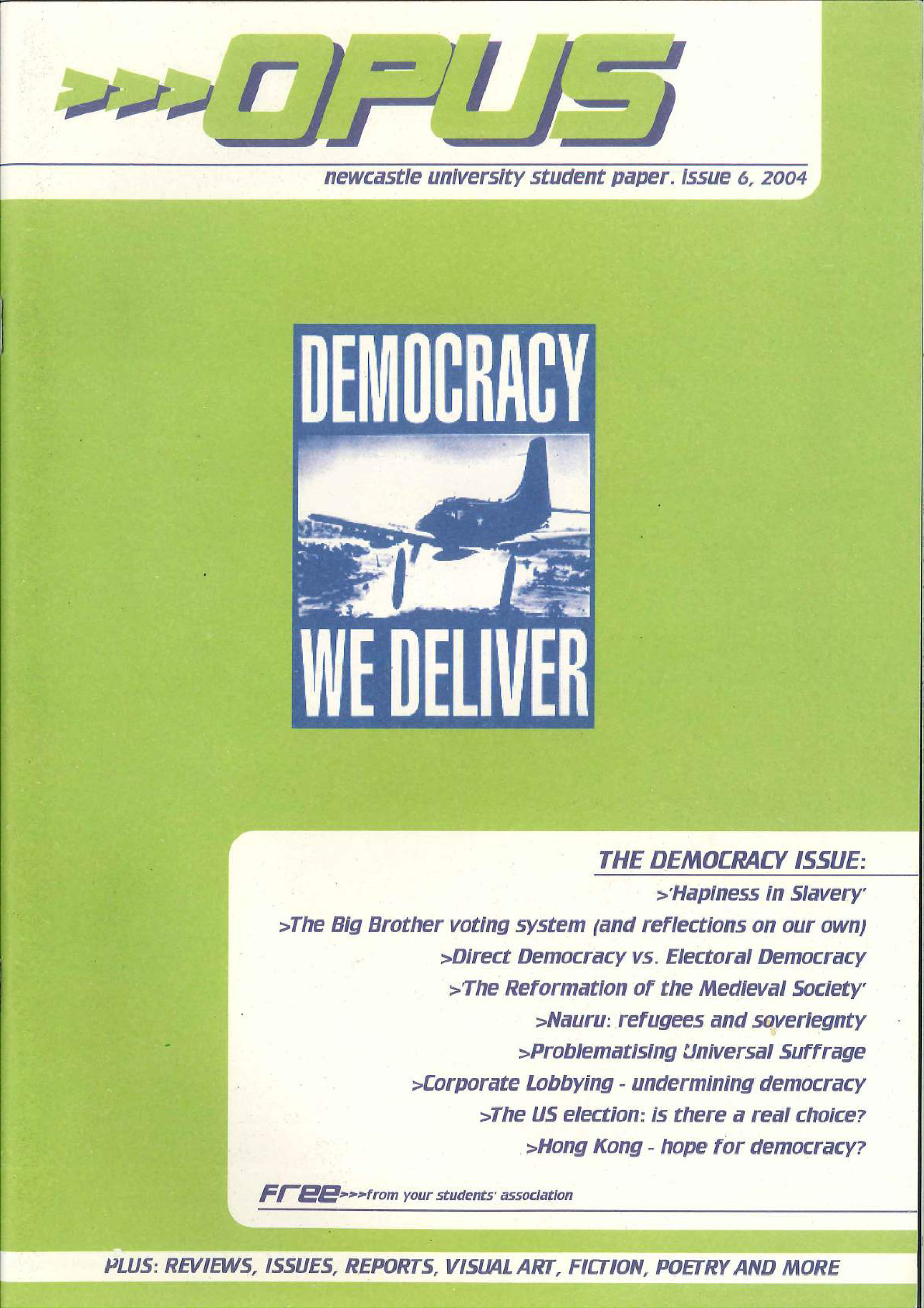 Newcastle University Students' Association (NUSA), Opus - Issue 6 - 2004 (2004), [Archives Serial 25]. Living Histories, accessed 19/02/2026, https://livinghistories.newcastle.edu.au/nodes/view/67647