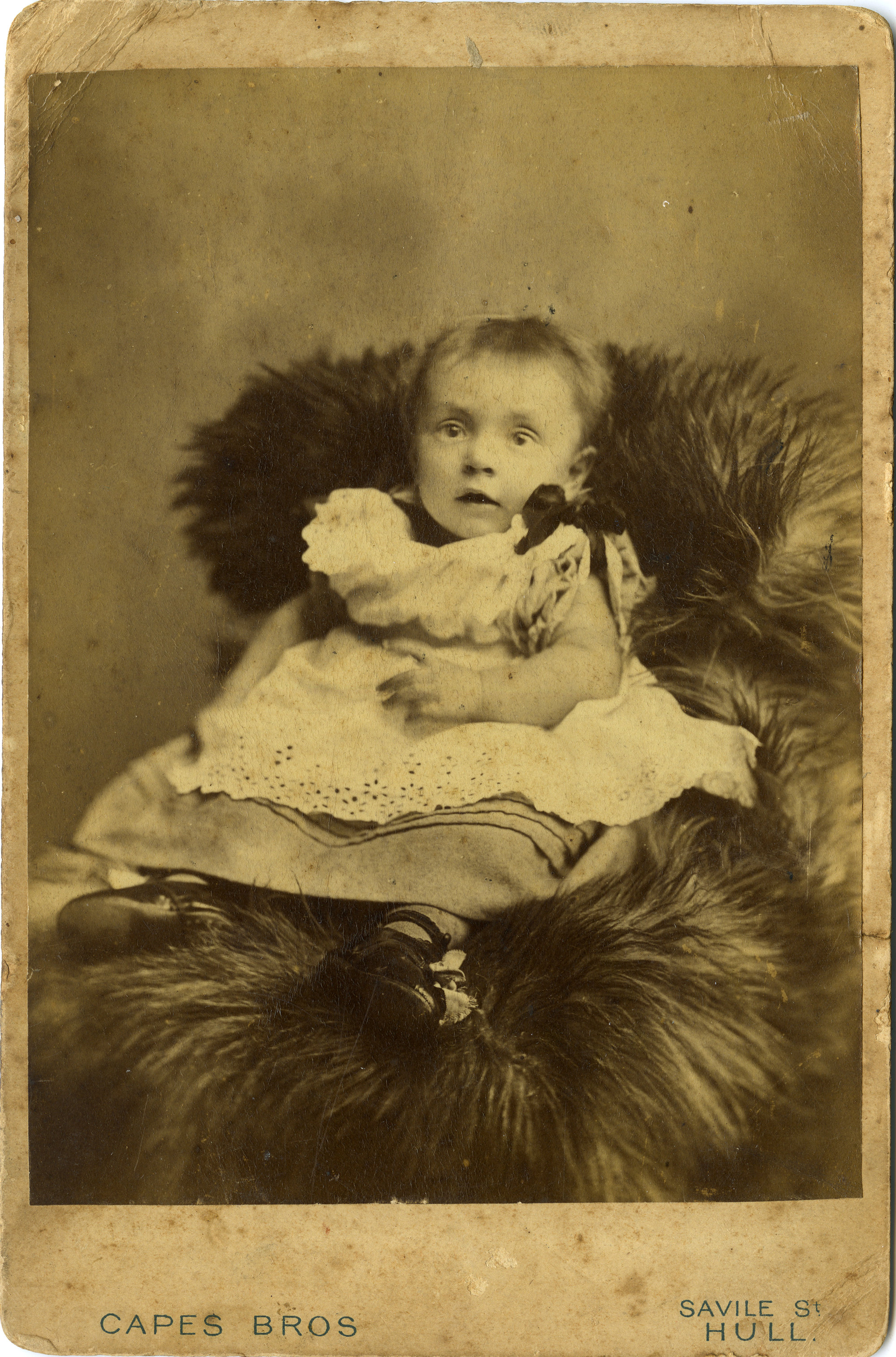 Capes Bros, Savile St, Hull., Studio portrait of a baby. ([1920-1925]), [C2018_x_005]. Living Histories, accessed 20/03/2026, https://livinghistories.newcastle.edu.au/nodes/view/67792