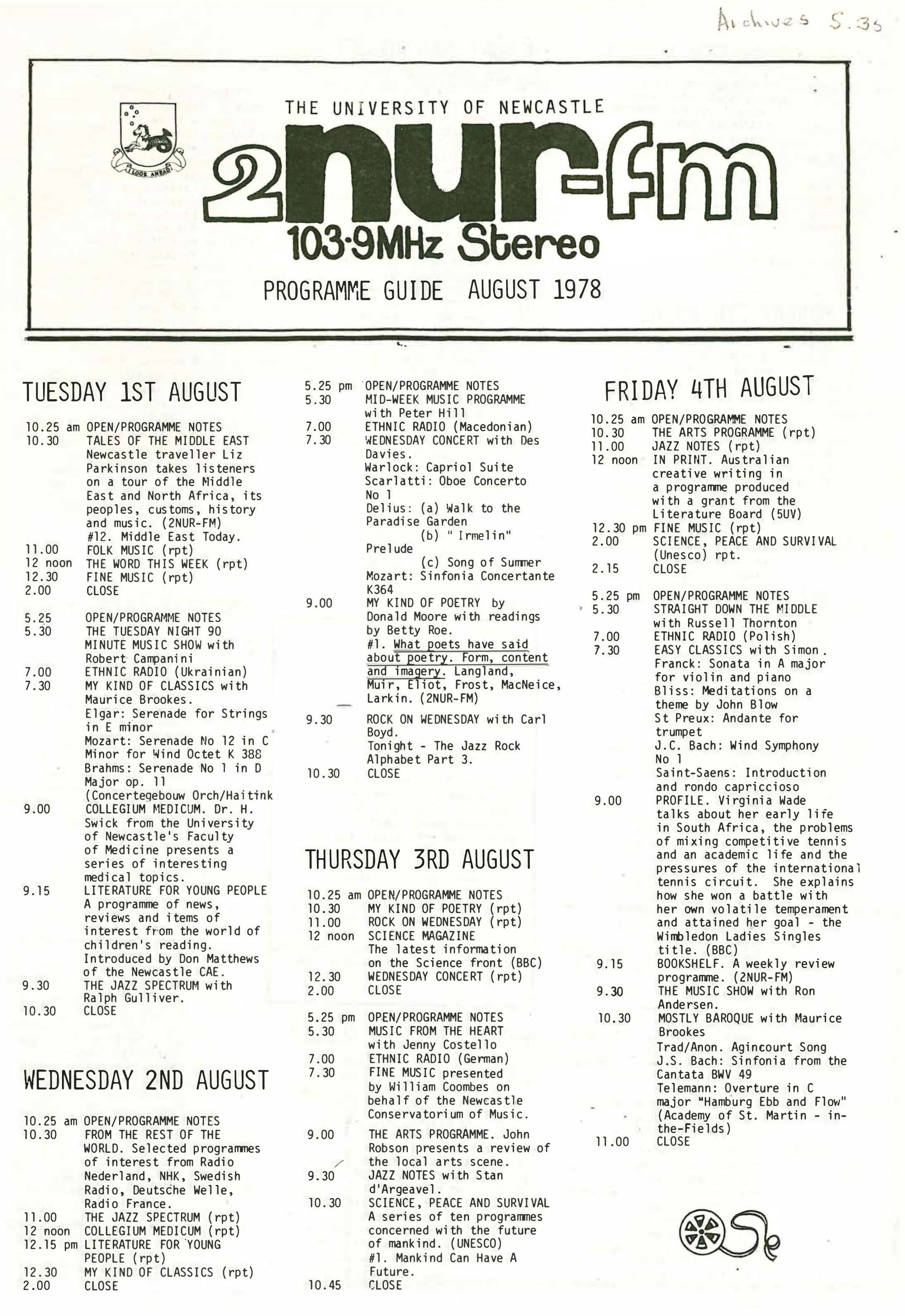 2NUR, 2NUR FM Programme Guide August 1978 (1st August 1978), [S35]. Living Histories, accessed 19/02/2026, https://livinghistories.newcastle.edu.au/nodes/view/67843