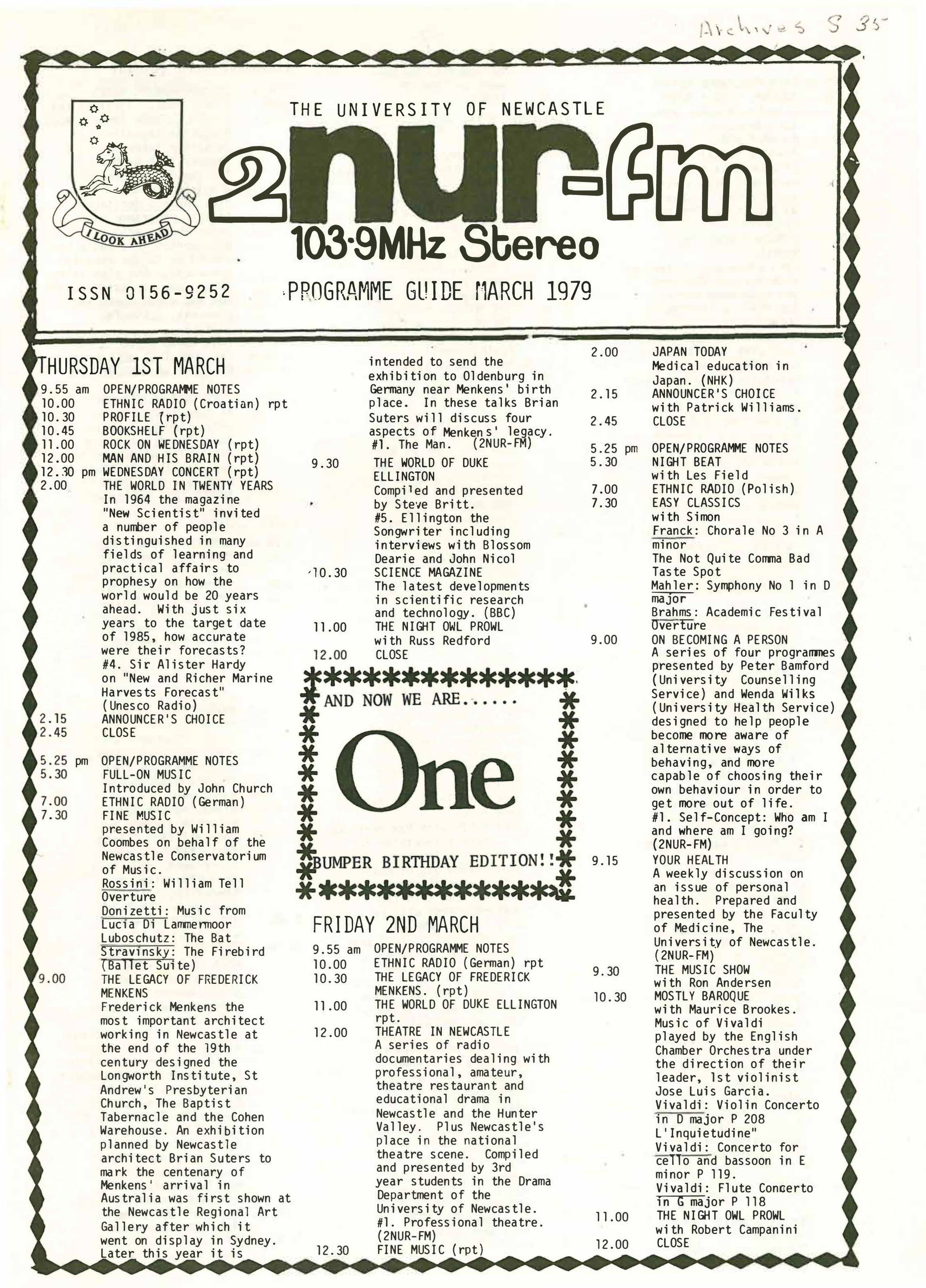 2NUR, 2NUR FM Programme Guide March 1979 (1st March 1979), [S35]. Living Histories, accessed 14/04/2026, https://livinghistories.newcastle.edu.au/nodes/view/67860