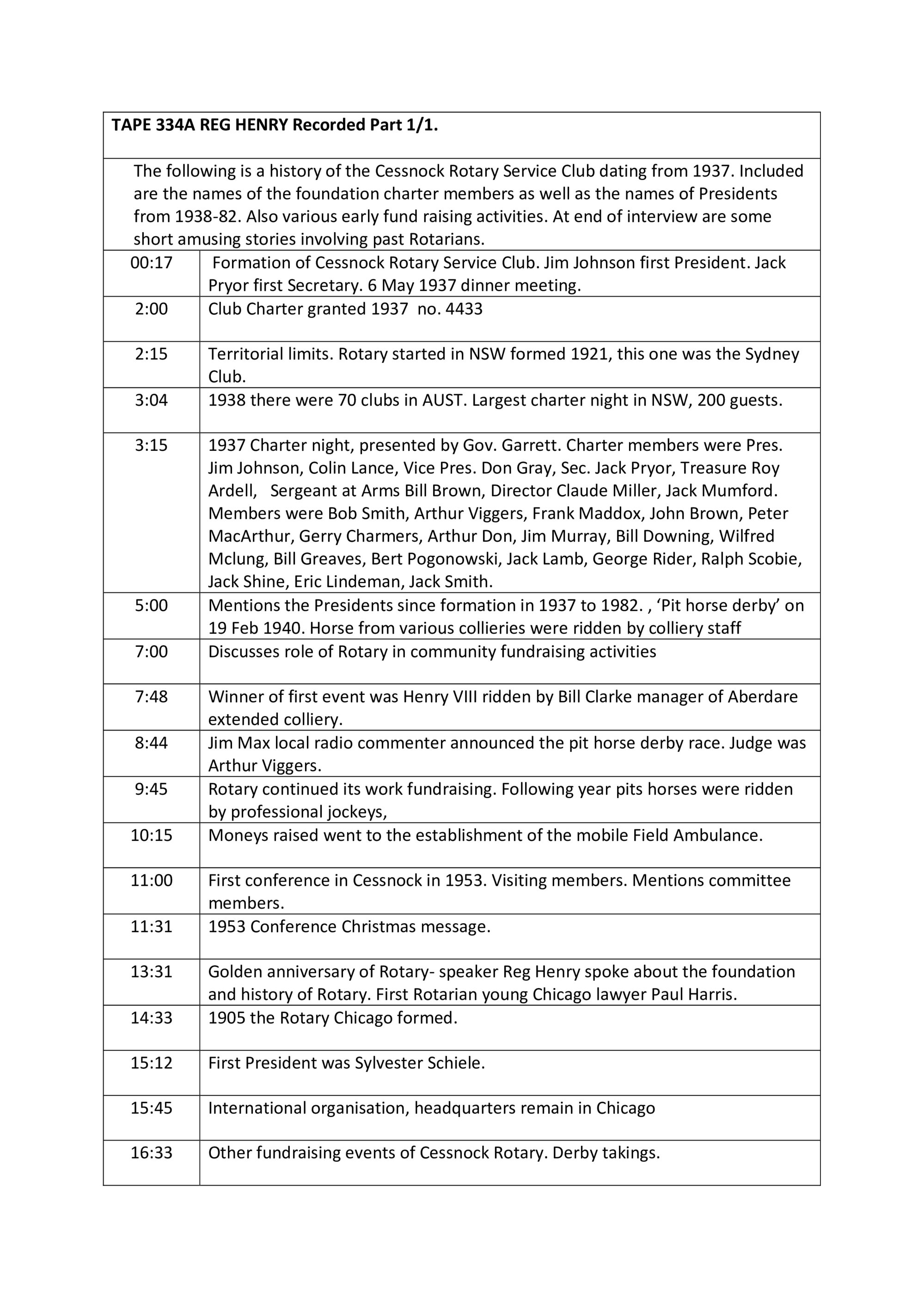 Summary: Reg Henry - History of Cessnock Rotary Club. Part 1/1.