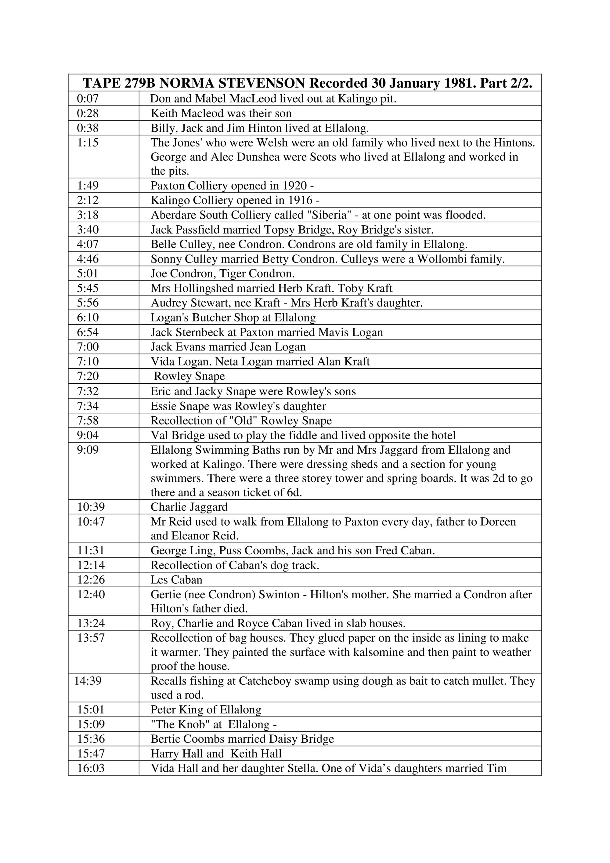 Delaney, Jack, 1919-2010, Summary: Norma Stevenson, nee Cameron - Ellalong and Cessnock resident. Recorded 30 January 1981. Part 2/2., [279B]. Living Histories, accessed 07/02/2026, https://livinghistories.newcastle.edu.au/nodes/view/68470