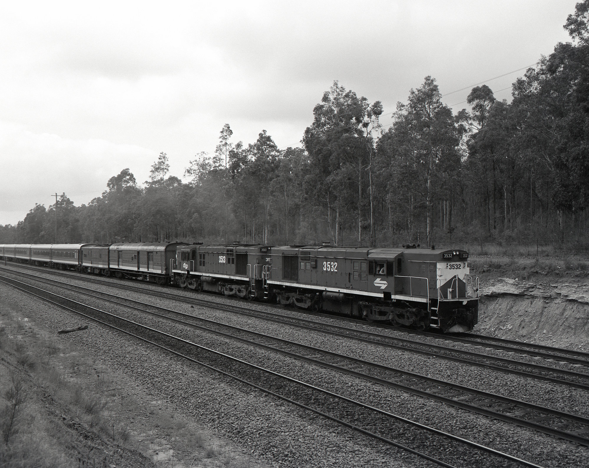 3532 and 3513 at Thornton, 10 February 1990, State Rail Authority of NSW