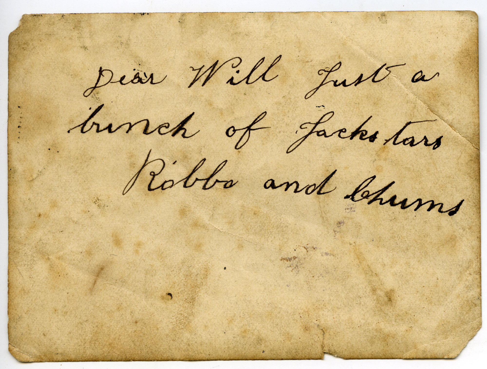 Inscription on reverse side of photograph of five men on a ship, [C2018(xvi)_019b]. Living Histories, accessed 16/04/2026, https://livinghistories.newcastle.edu.au/nodes/view/68835