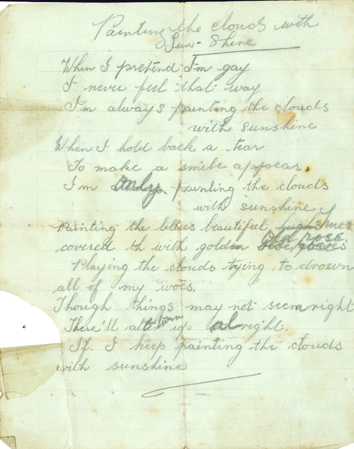 Handwritten Piece titled "painting the Clouds with Sunshine, [C2018(ii)_060]. Living Histories, accessed 16/03/2026, https://livinghistories.newcastle.edu.au/nodes/view/68935