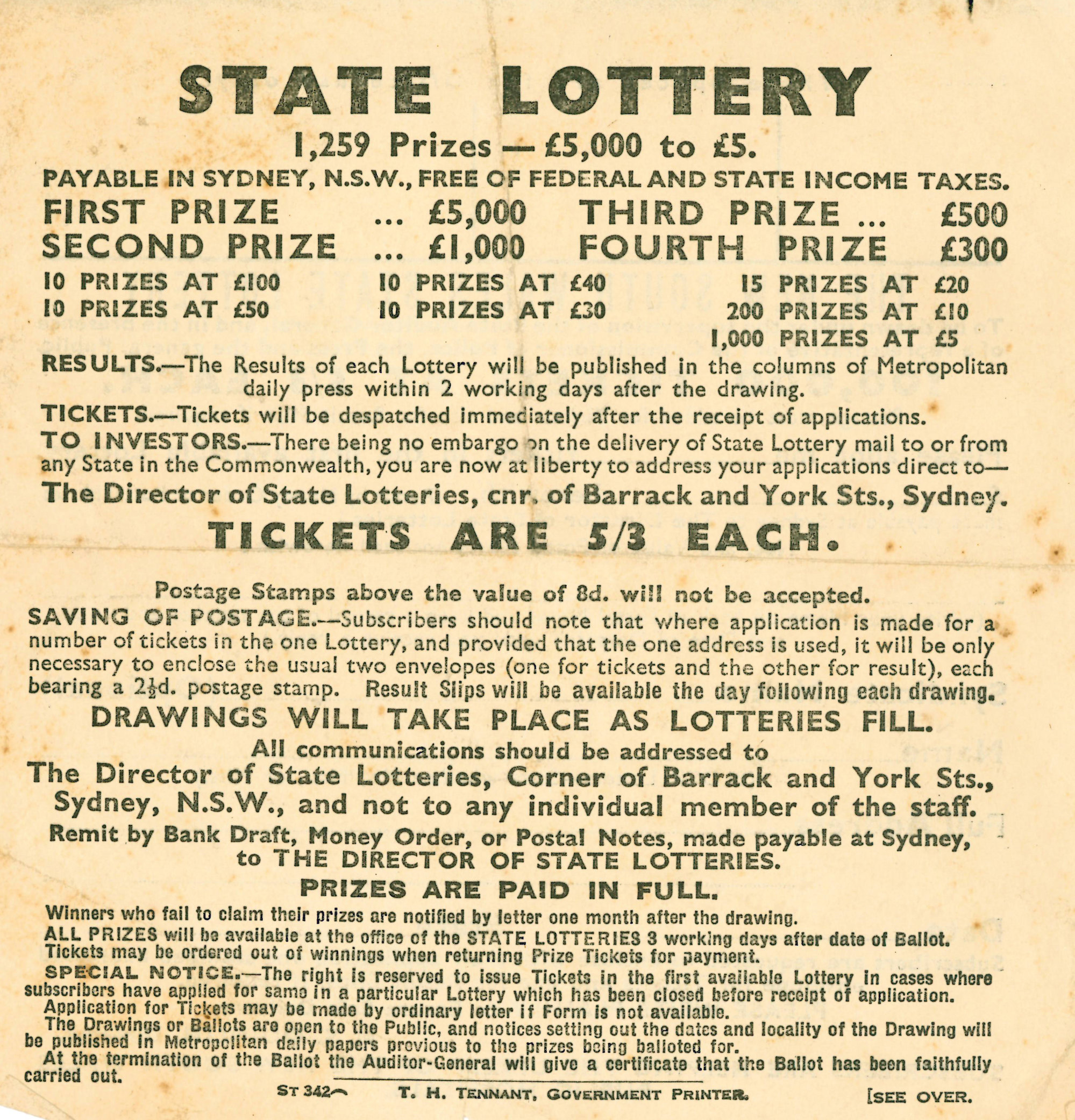 Flyer advertising State Lottery ([c. 1930s]), [C2018(ii)_071]. Living Histories, accessed 16/04/2026, https://livinghistories.newcastle.edu.au/nodes/view/68946