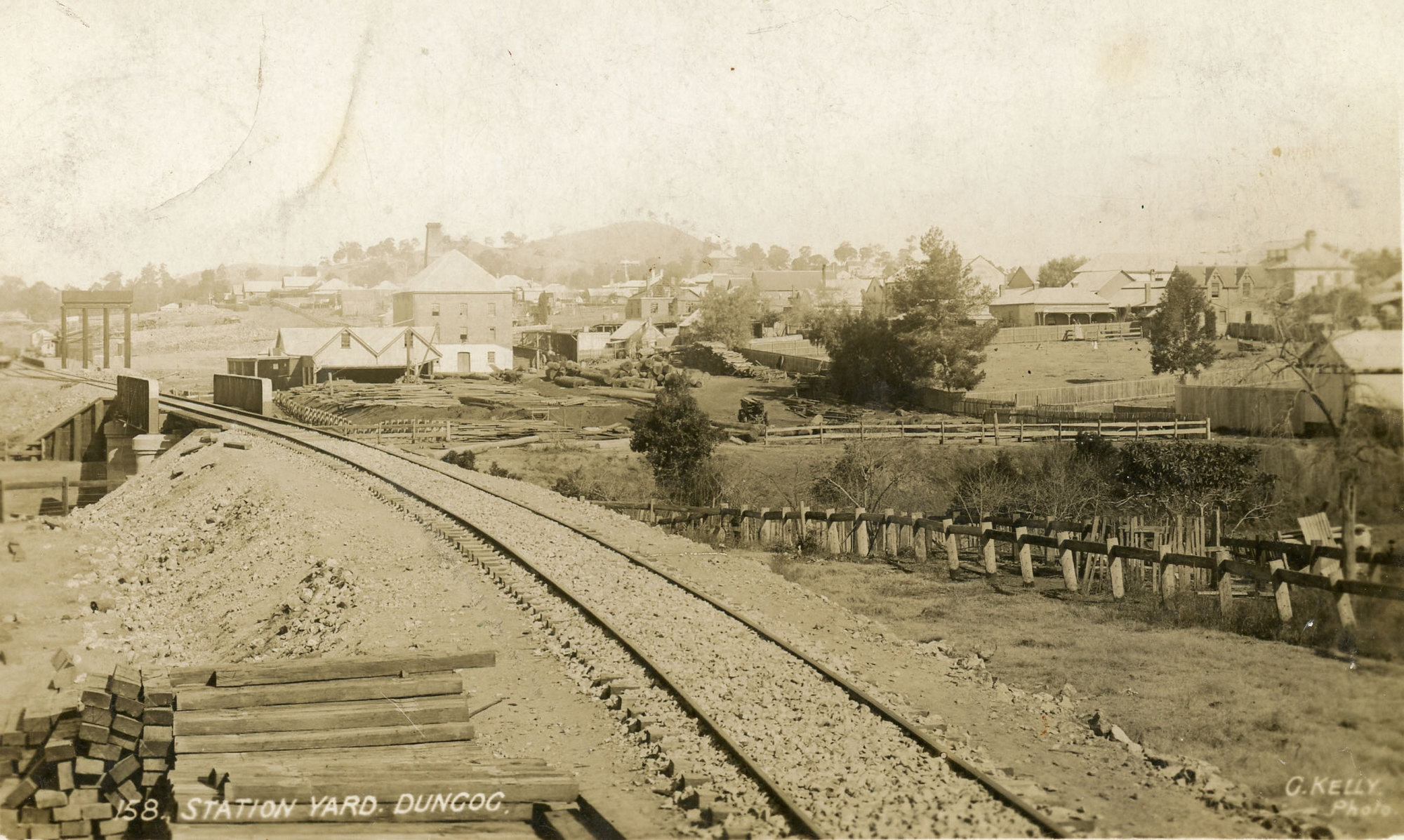 Kelly, George, 158. STATION YARD. DUNGOG. G. KELLY. Photo. [undated], [A9020 (xiii)-050-Dungog-recto]. Living Histories, accessed 24/01/2026, https://livinghistories.newcastle.edu.au/nodes/view/6917