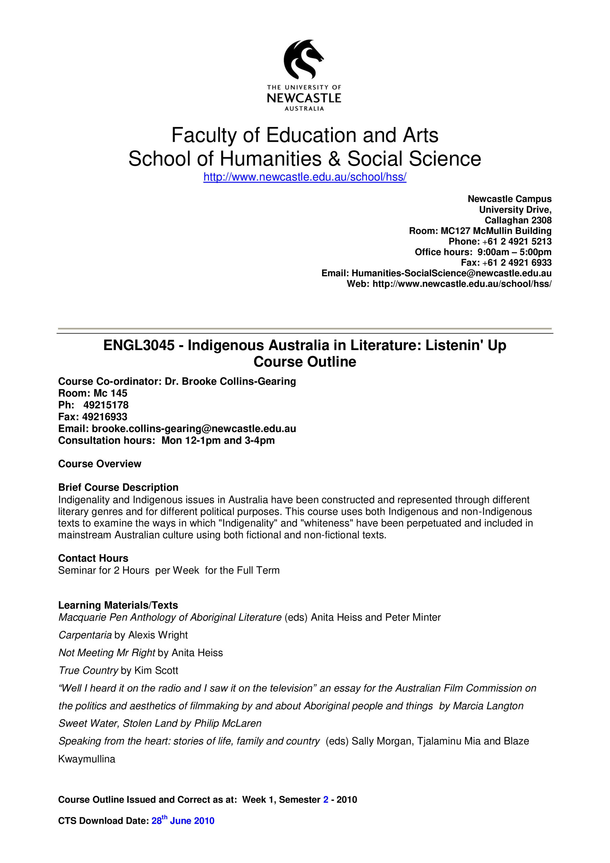 School of Humanities and Social Science, ENGL3045 Course Outline, Semester 2, 2010 (2010). Living Histories, accessed 06/03/2026, https://livinghistories.newcastle.edu.au/nodes/view/69251