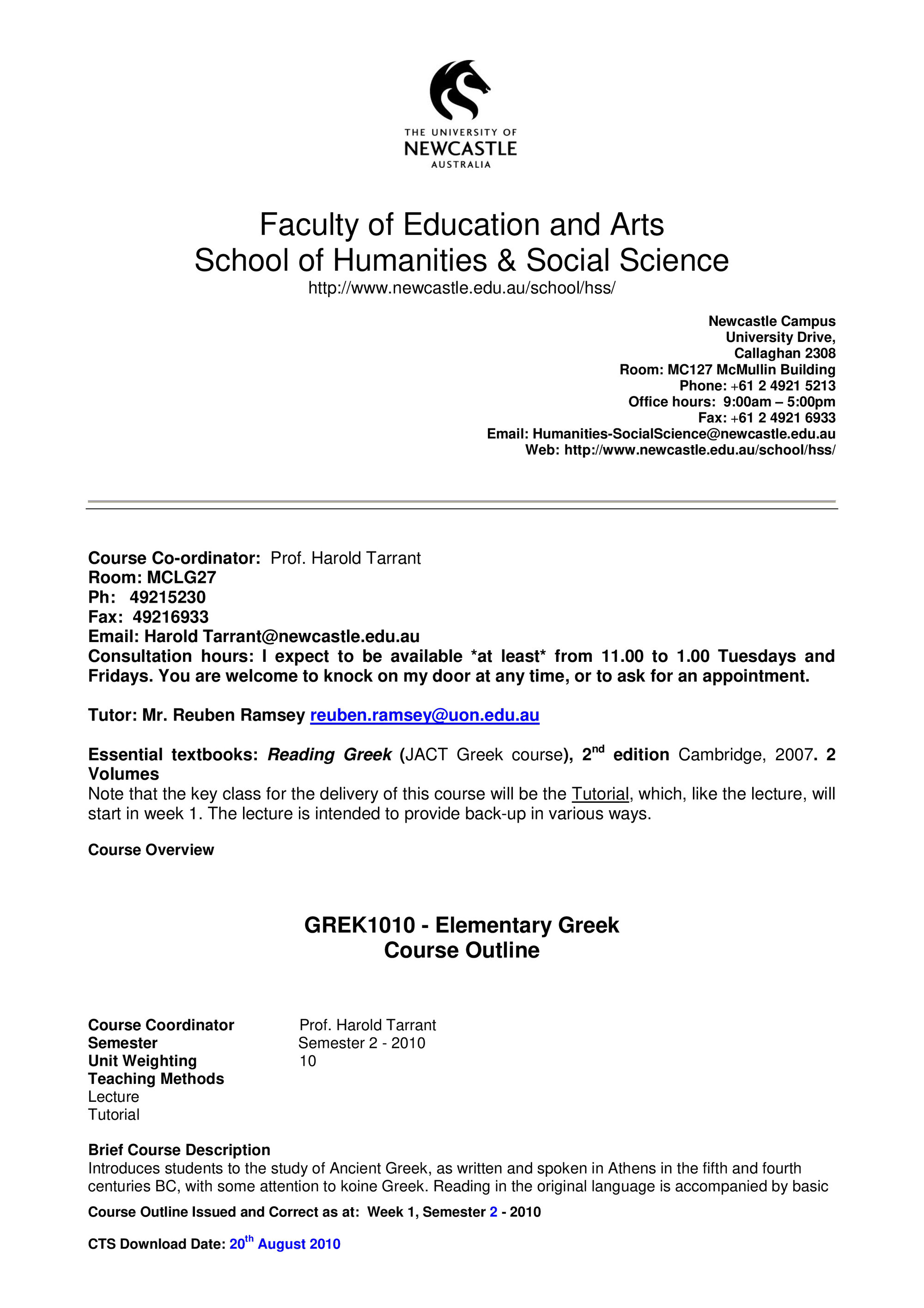 School of Humanities and Social Science, GREK1010 Course Outline, Semester 2, 2010 (2010). Living Histories, accessed 16/04/2026, https://livinghistories.newcastle.edu.au/nodes/view/69264
