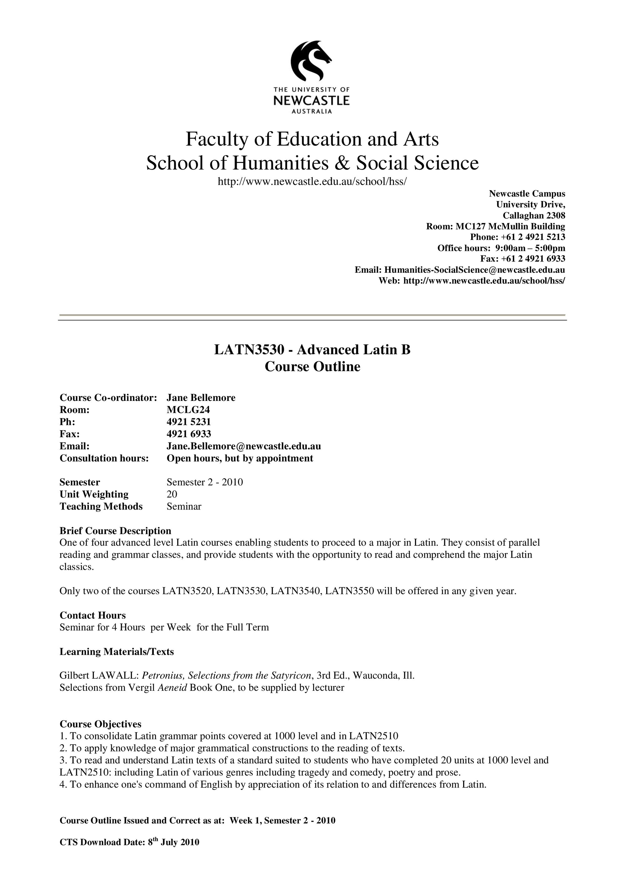 School of Humanities and Social Science, LATN3530 Course Outline, Semester 2, 2010 (2010). Living Histories, accessed 13/01/2026, https://livinghistories.newcastle.edu.au/nodes/view/69284