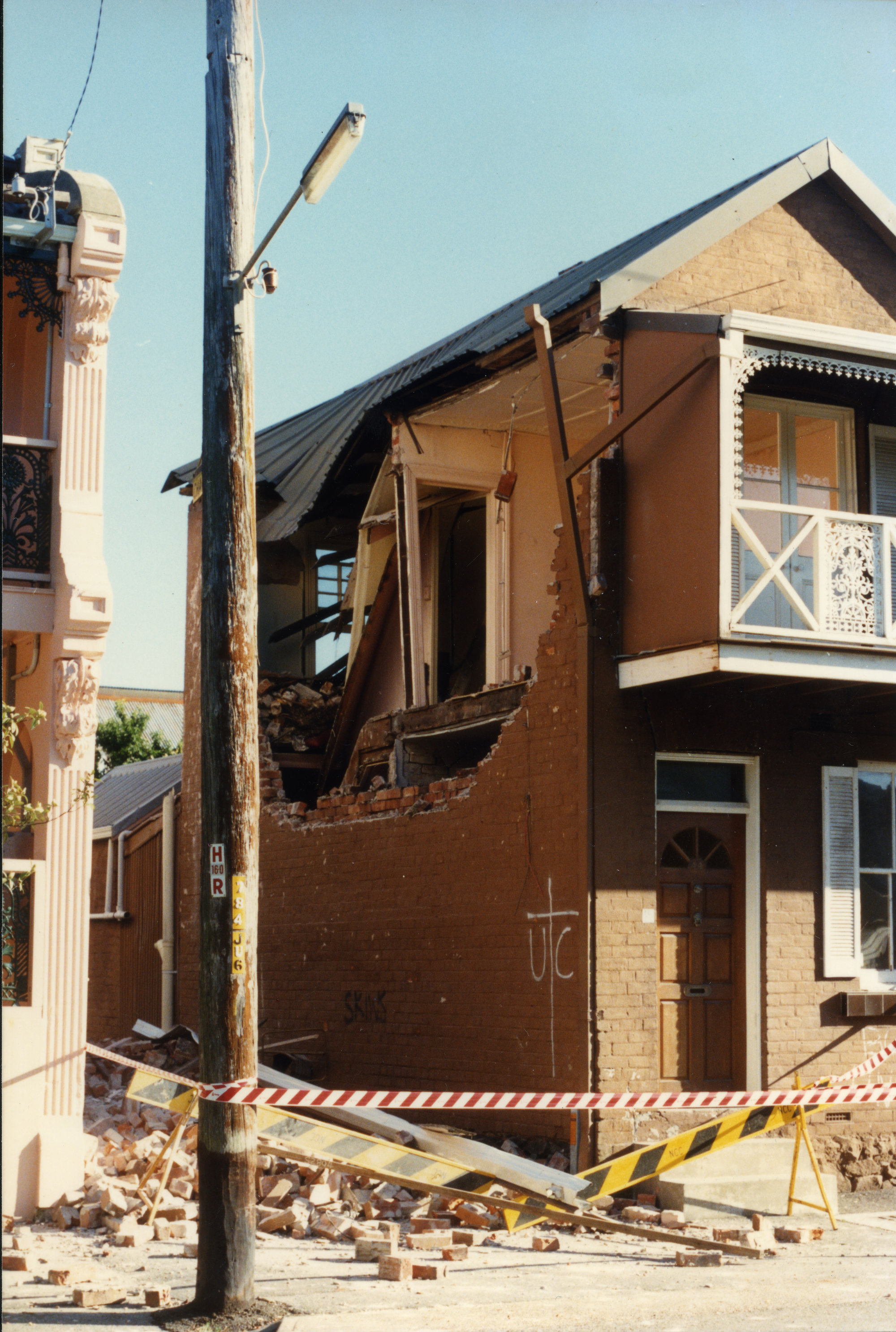 Nicholls, Geoffrey, Laman St, Newcastle Earthquake, 31 December 1989 (31st December 1989), [GENI_006]. Living Histories, accessed 17/03/2026, https://livinghistories.newcastle.edu.au/nodes/view/69712