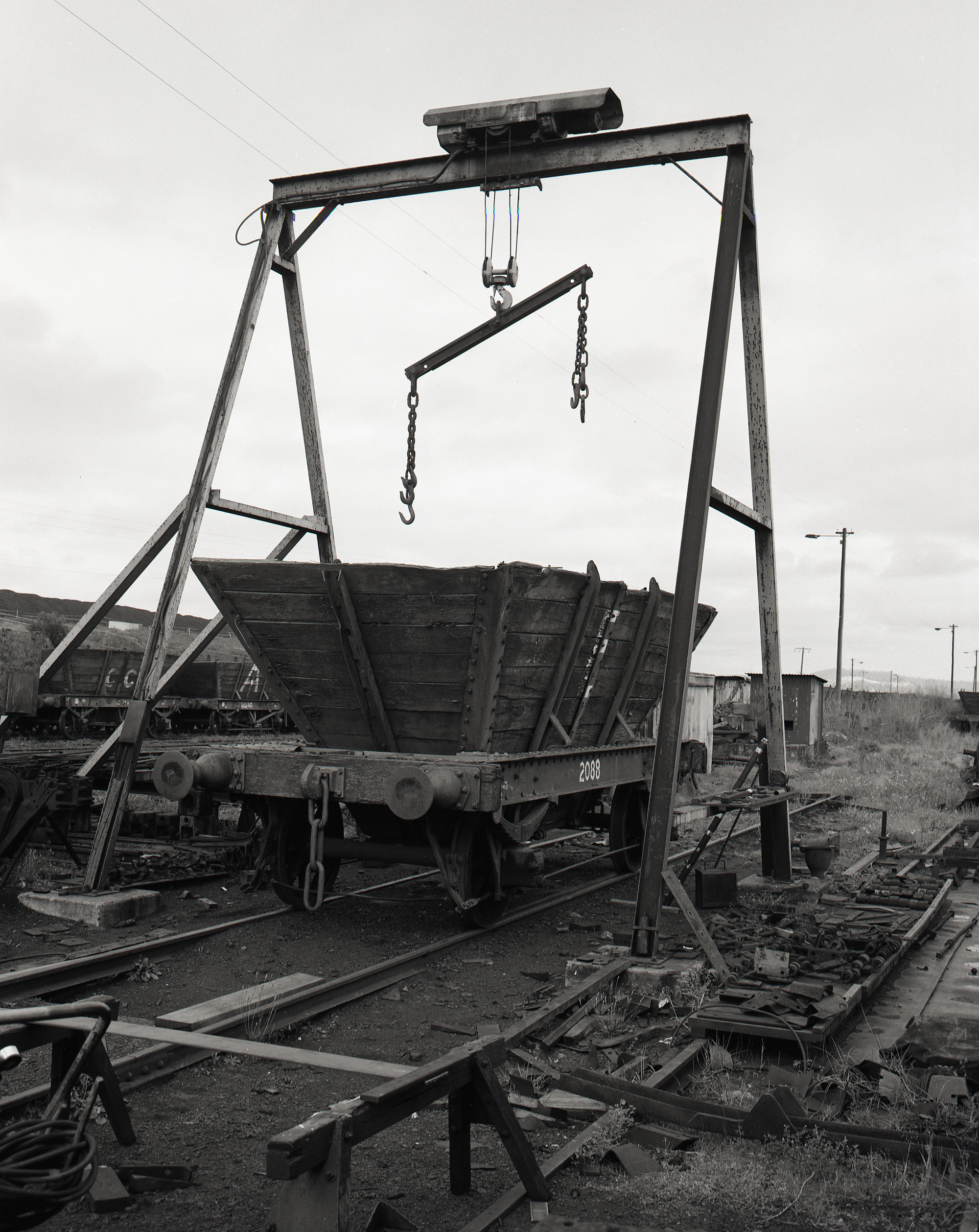 Andrews, Brian Robert, Last waggon under hoist, 21 September 1987, on the last Monday Richmond Vale Railway worked (21st September 1987), [BRAN462_004]. Living Histories, accessed 11/03/2026, https://livinghistories.newcastle.edu.au/nodes/view/69899