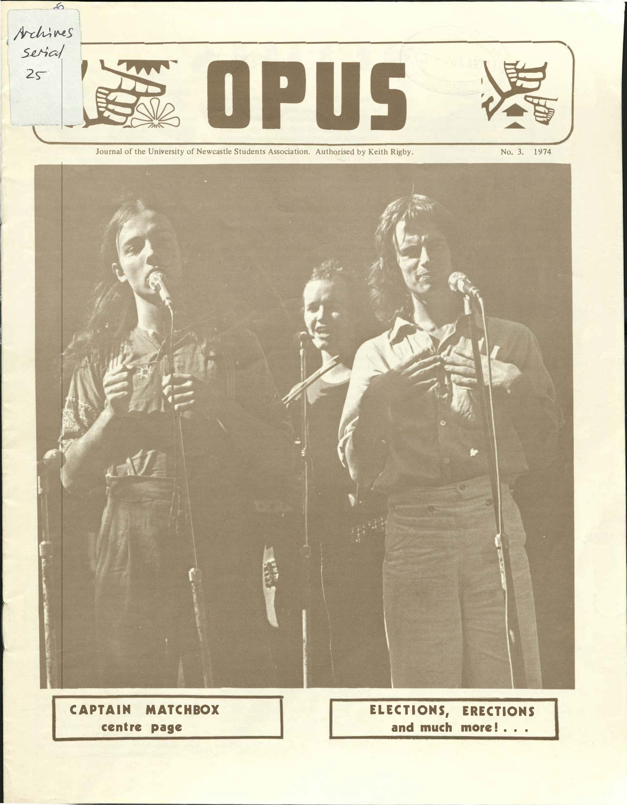 Newcastle University Students' Association (NUSA), Opus - No. 3, 1974 (1974), [Archives Serial 25]. Living Histories, accessed 08/02/2026, https://livinghistories.newcastle.edu.au/nodes/view/69945