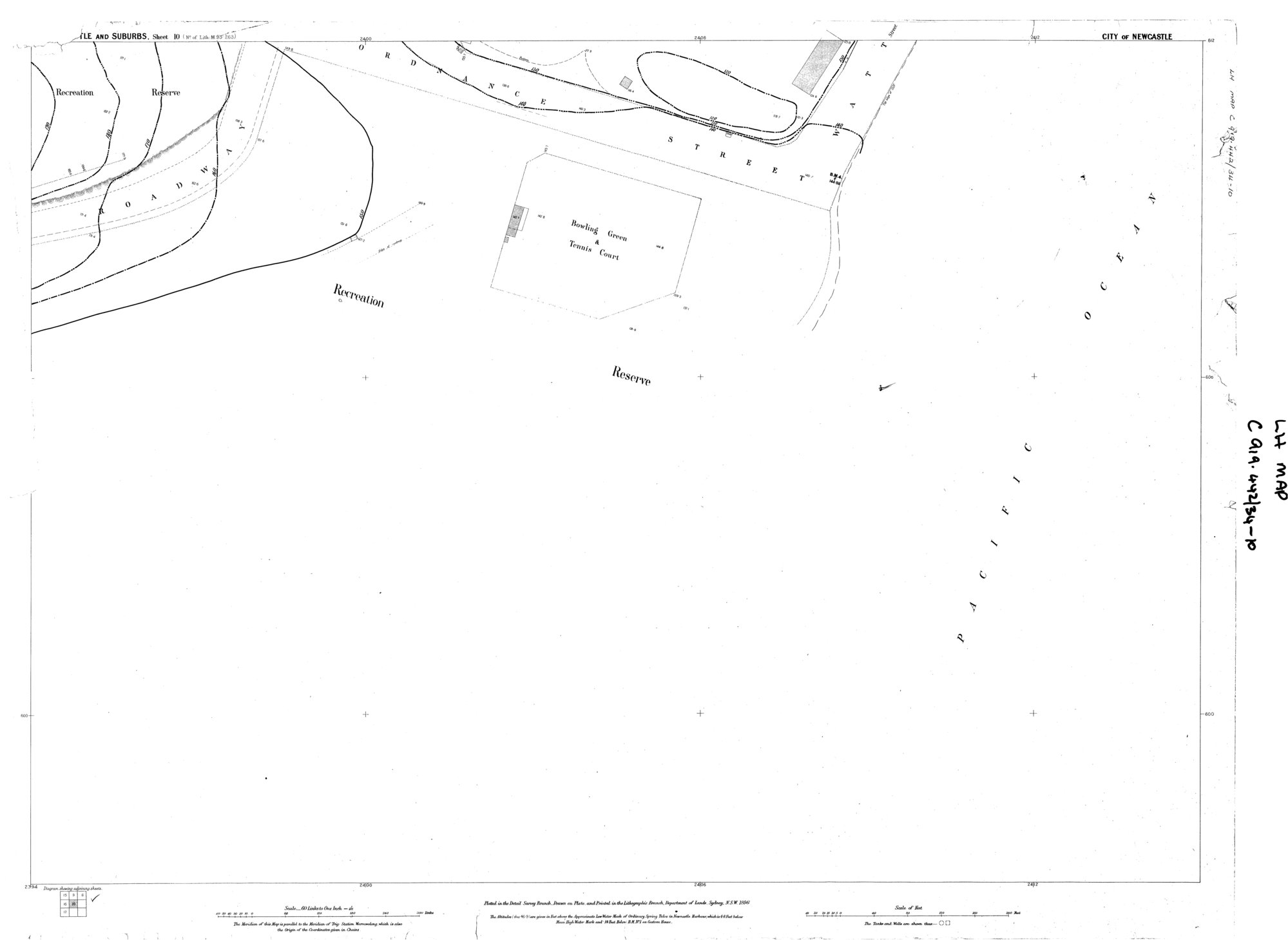 New South Wales. Department of Lands, Newcastle and Suburbs Sheet 010 (No. of Lith. M.95.263) - City of Newcastle, 1896 (Between 1st January 1896 and 31st December 1896), [010-C919-442-34-010]. Living Histories, accessed 10/02/2026, https://livinghistories.newcastle.edu.au/nodes/view/69973