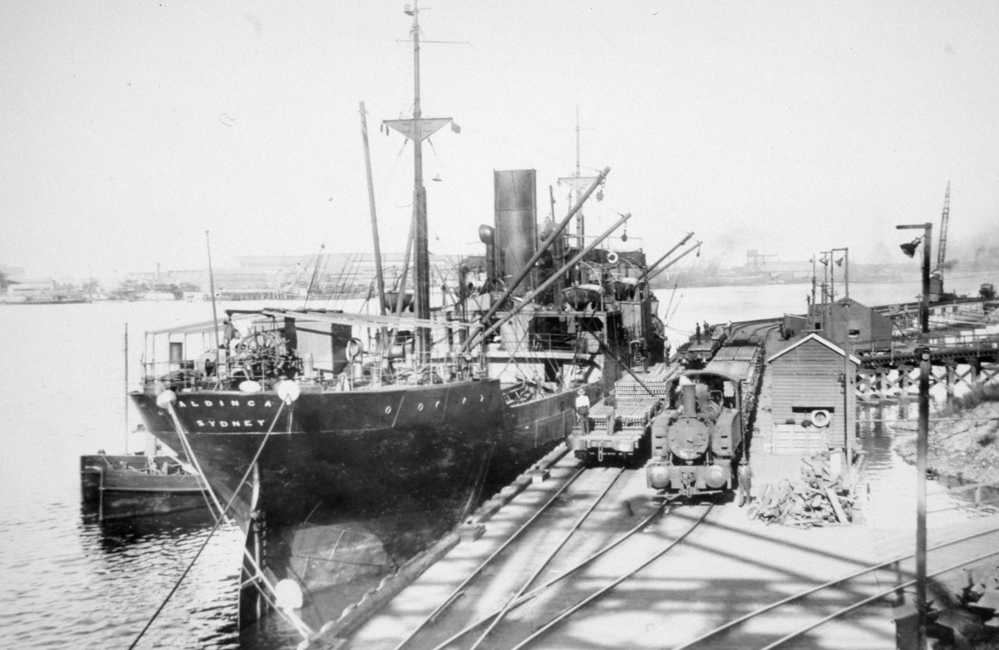 BHP Newcastle Steelworks. 'S.S. Aldinga' loading rails, c. 1922. (1915), [Ruddick_bhparchives_018]. Living Histories, accessed 08/02/2026, https://livinghistories.newcastle.edu.au/nodes/view/70519
