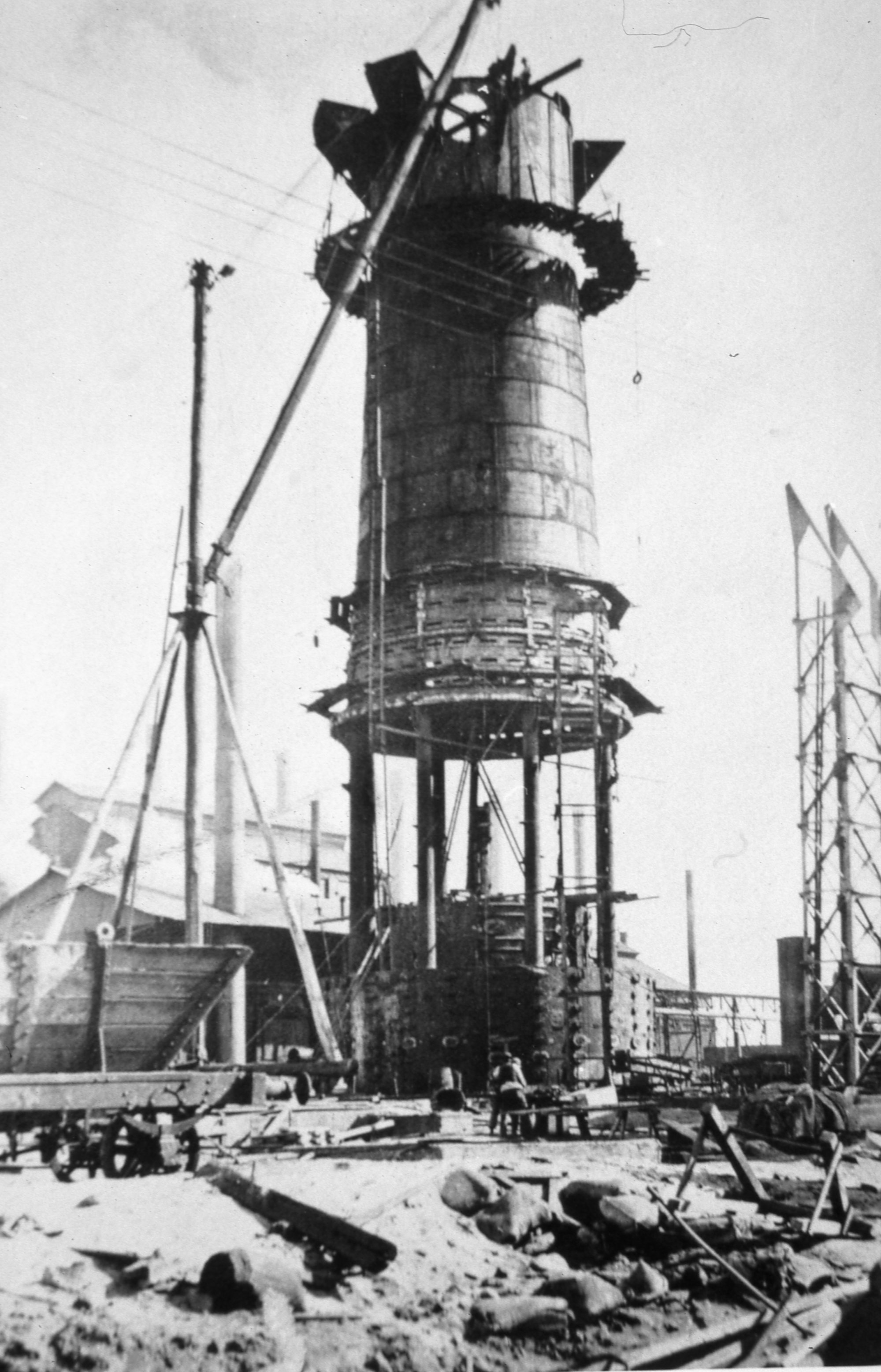 BHP Newcastle Steelworks. No.1 Blast Furnace under construction,1914. (BHP Negative N.2815)
