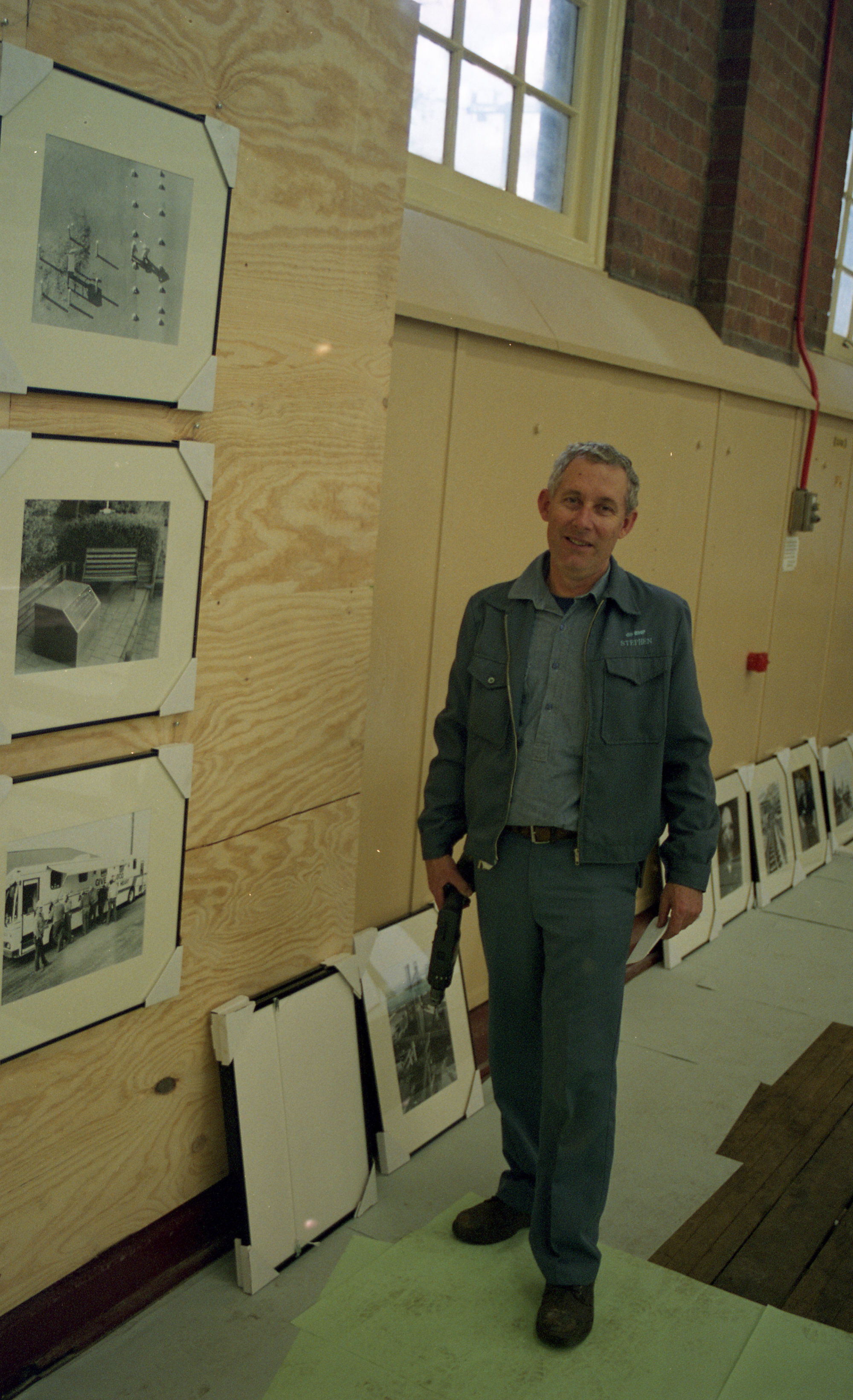 Steve Ford setting up in the Tool Room for the closure ceremony of BHP Newcastle, 8th August 1999