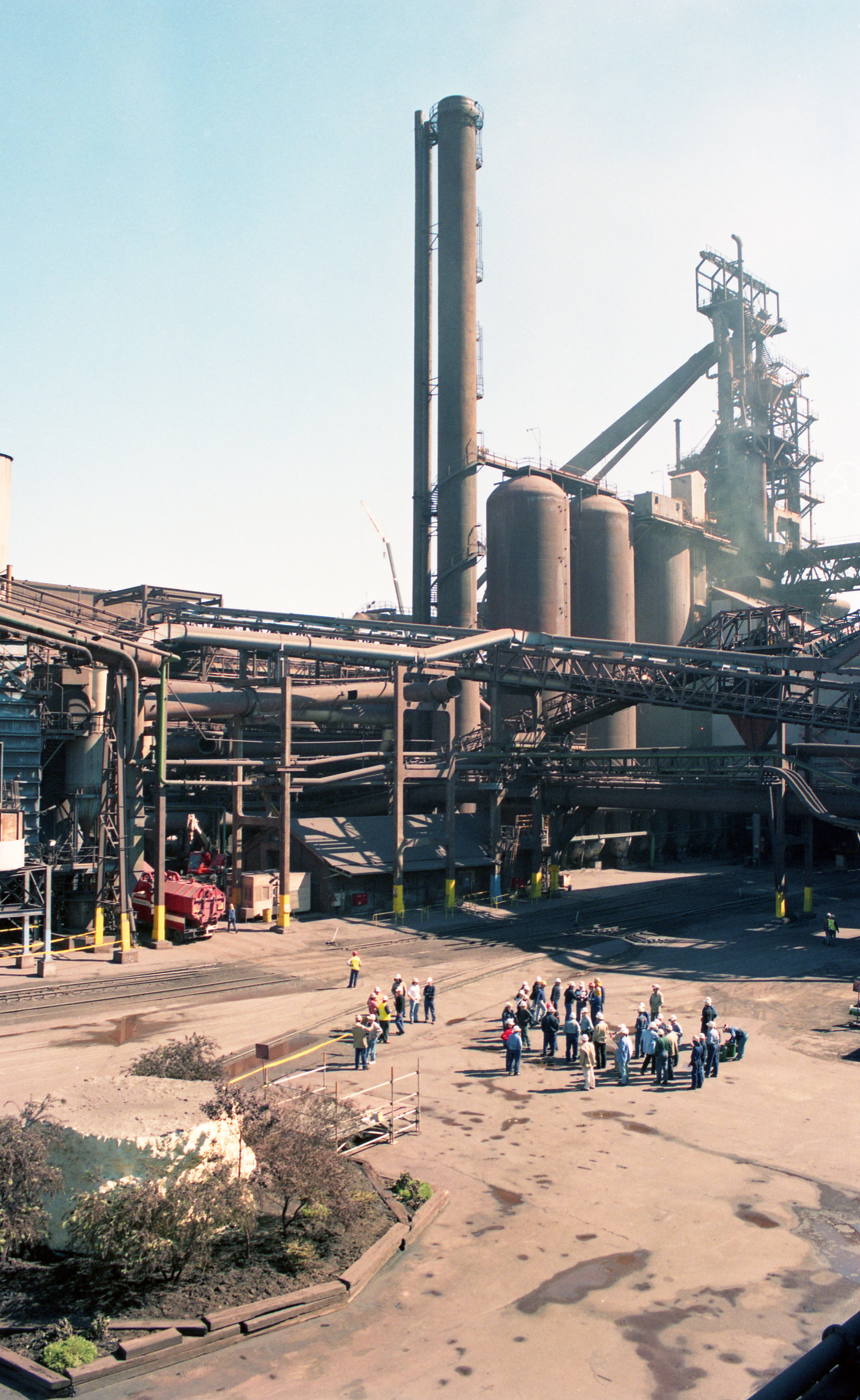 Ruddick, William, Crowd gathering around No. 1 Blast Furnace "Stump", BHP Newcastle, for the launch of the book "Tailing Out", 18th August 1999 (1999-08-19), [Ruddick_BHP_4_001]. Living Histories, accessed 08/03/2026, https://livinghistories.newcastle.edu.au/nodes/view/70691