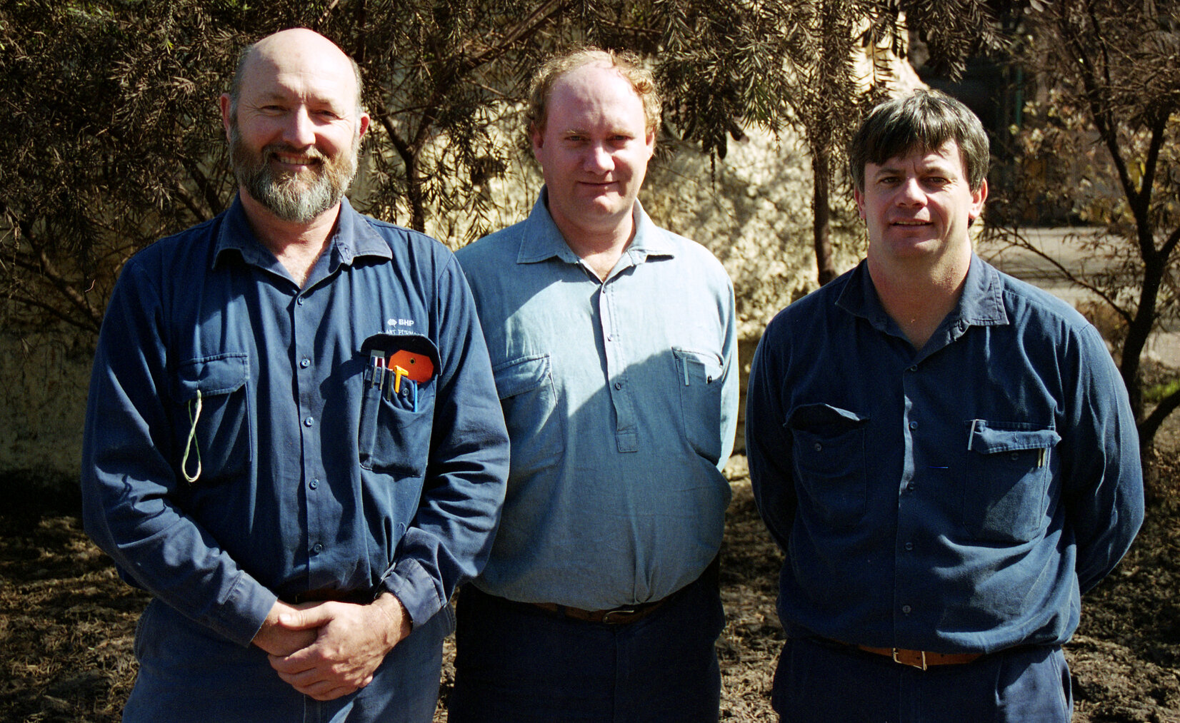 Ruddick, William, Bill Ruddick, John Sansom & Mark Baldwin taken in front of No. 1 Blast Furnace "Stump", Blast Furnace Department, September 1999 (1999-09), [Ruddick_BHP_8_002]. Living Histories, accessed 18/03/2026, https://livinghistories.newcastle.edu.au/nodes/view/70824