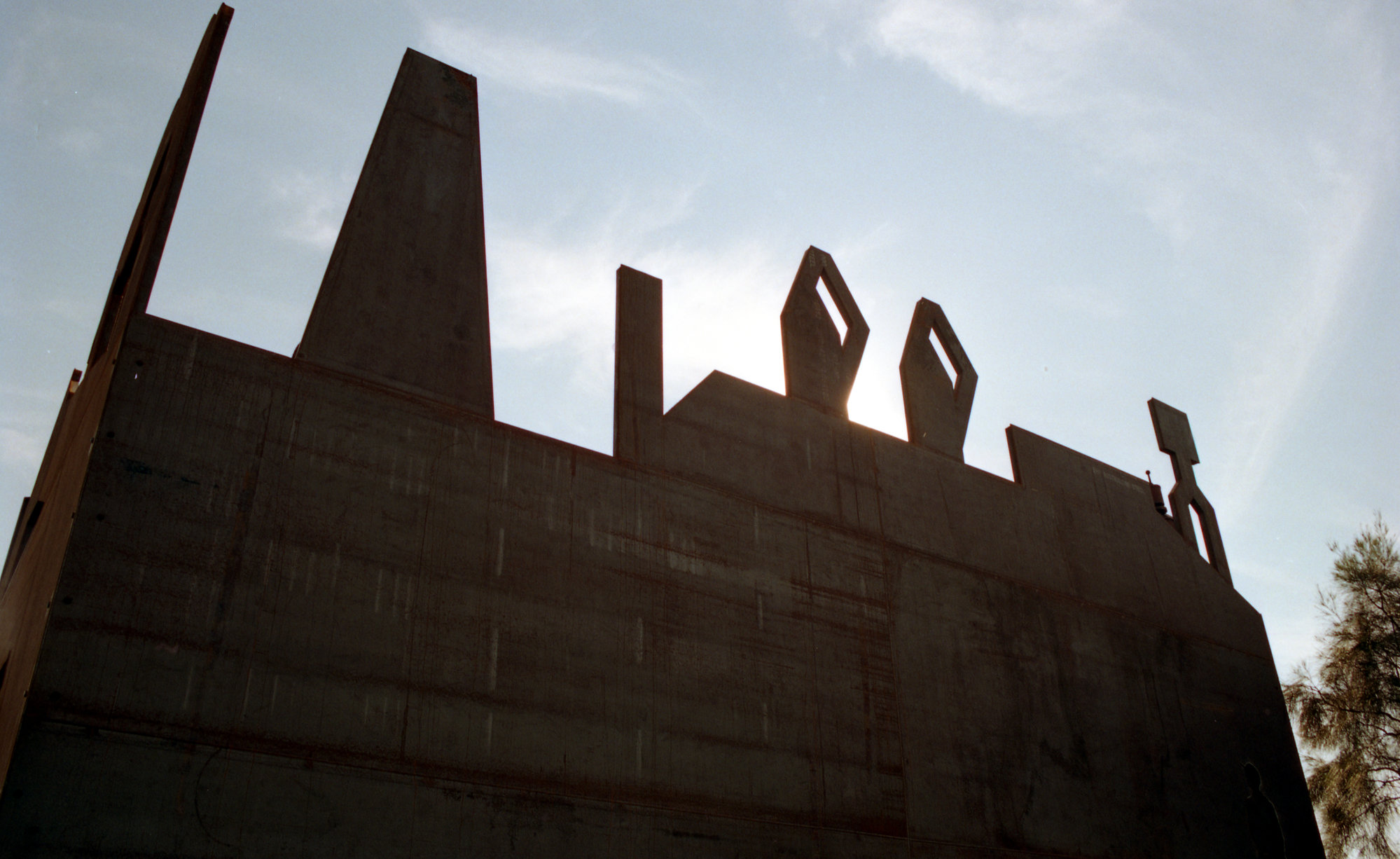 Ruddick, William, Opening of the sculpture "The Muster Point". Photo of the skyline of the sculpture, BHP Newcastle, 15th September 1999 (1999-09-15), [Ruddick_BHP_13_021]. Living Histories, accessed 09/03/2026, https://livinghistories.newcastle.edu.au/nodes/view/70990