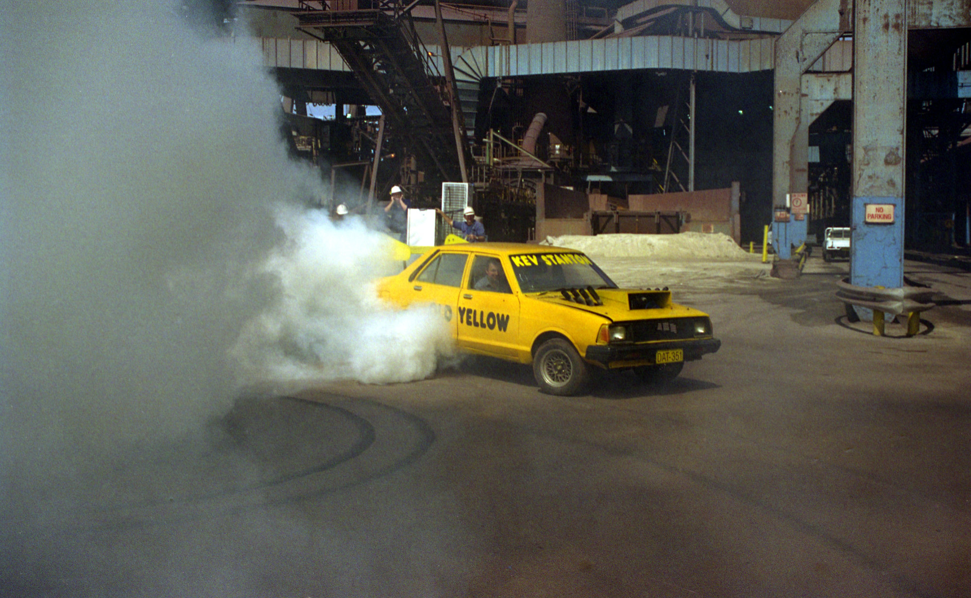Ruddick, William, Kevin Stanton doing some circle work in his V8 Datsun, Blast Furnace Department, BHP Newcastle, 28th September 1999 (1999-09-28), [Ruddick_BHP_18_001a]. Living Histories, accessed 13/01/2026, https://livinghistories.newcastle.edu.au/nodes/view/71113