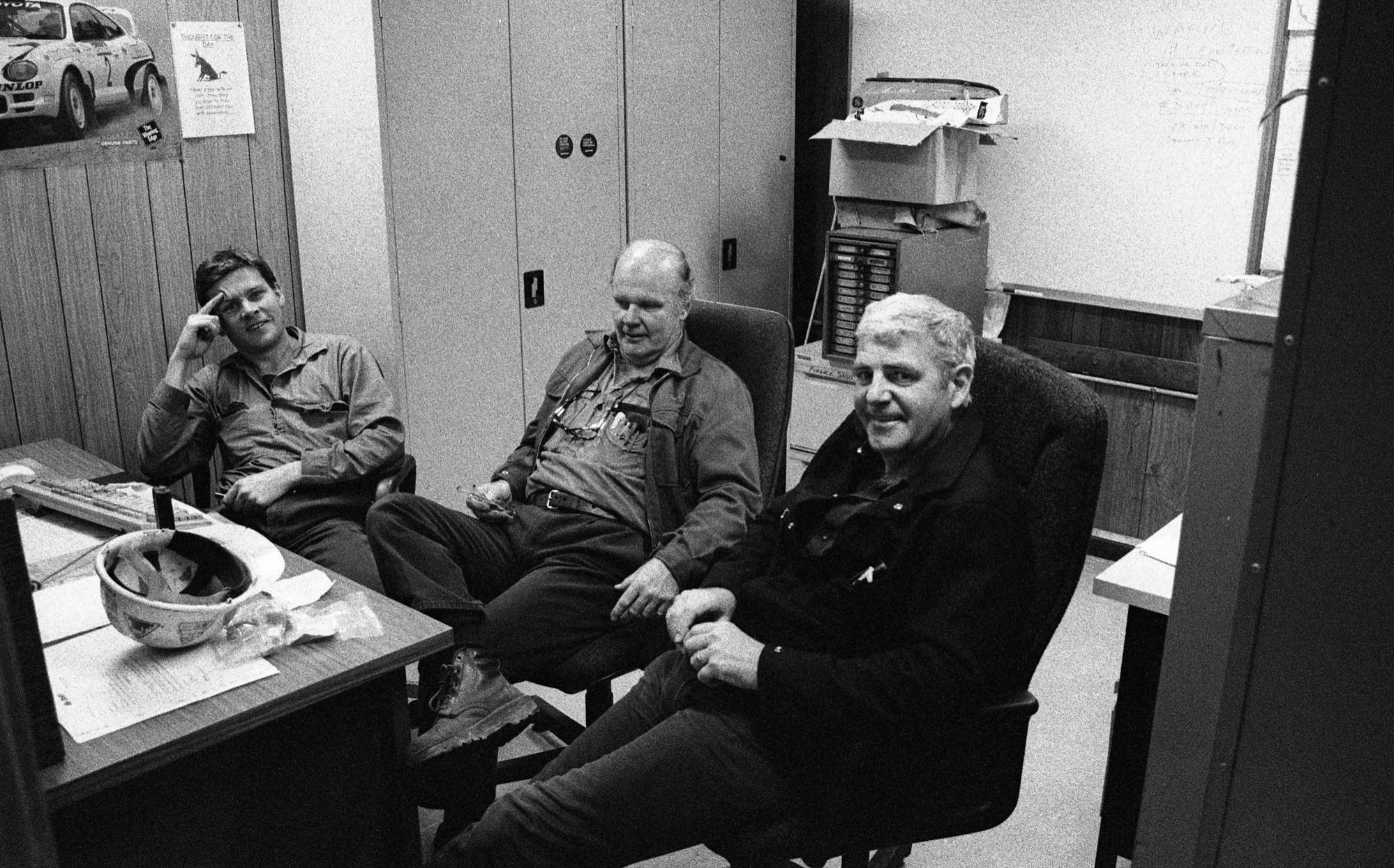 Wayne Anderson, electrician; Putzi Meiers, instrument fitter; Peter Archer, maintenance planner. Blast Furnace Electrical Workshop, BHP Newcastle, c. 1997