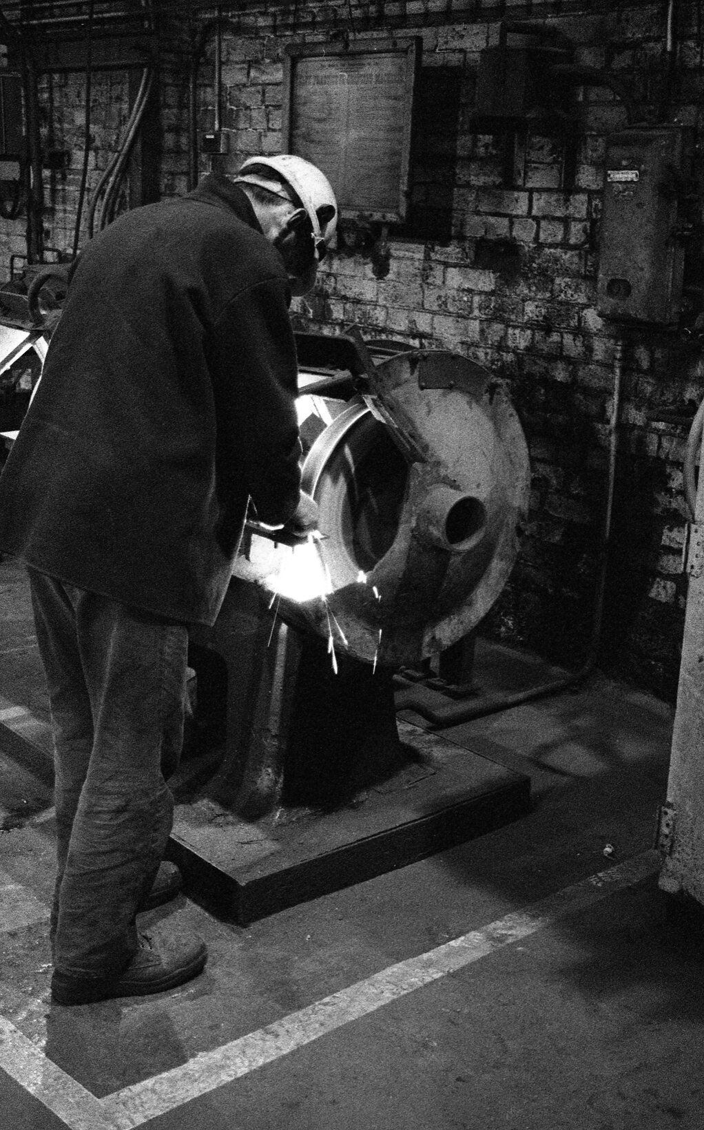 Savo Jankovic using grinder in Blast Furnace Mechanic's Workshop, BHP Newcastle, c. 1997