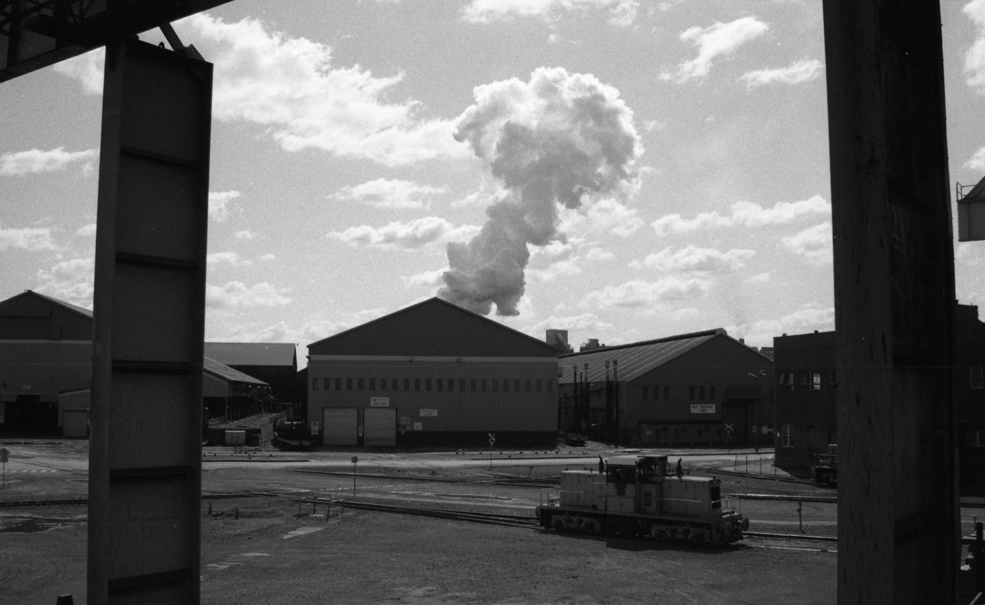 Ruddick, William, Coke Ovens quench plume, taken from Bloom Mill Hot Beds, BHP Newcastle, c. 1997 (1997), [Ruddick_Roll_26_013]. Living Histories, accessed 18/03/2026, https://livinghistories.newcastle.edu.au/nodes/view/71363