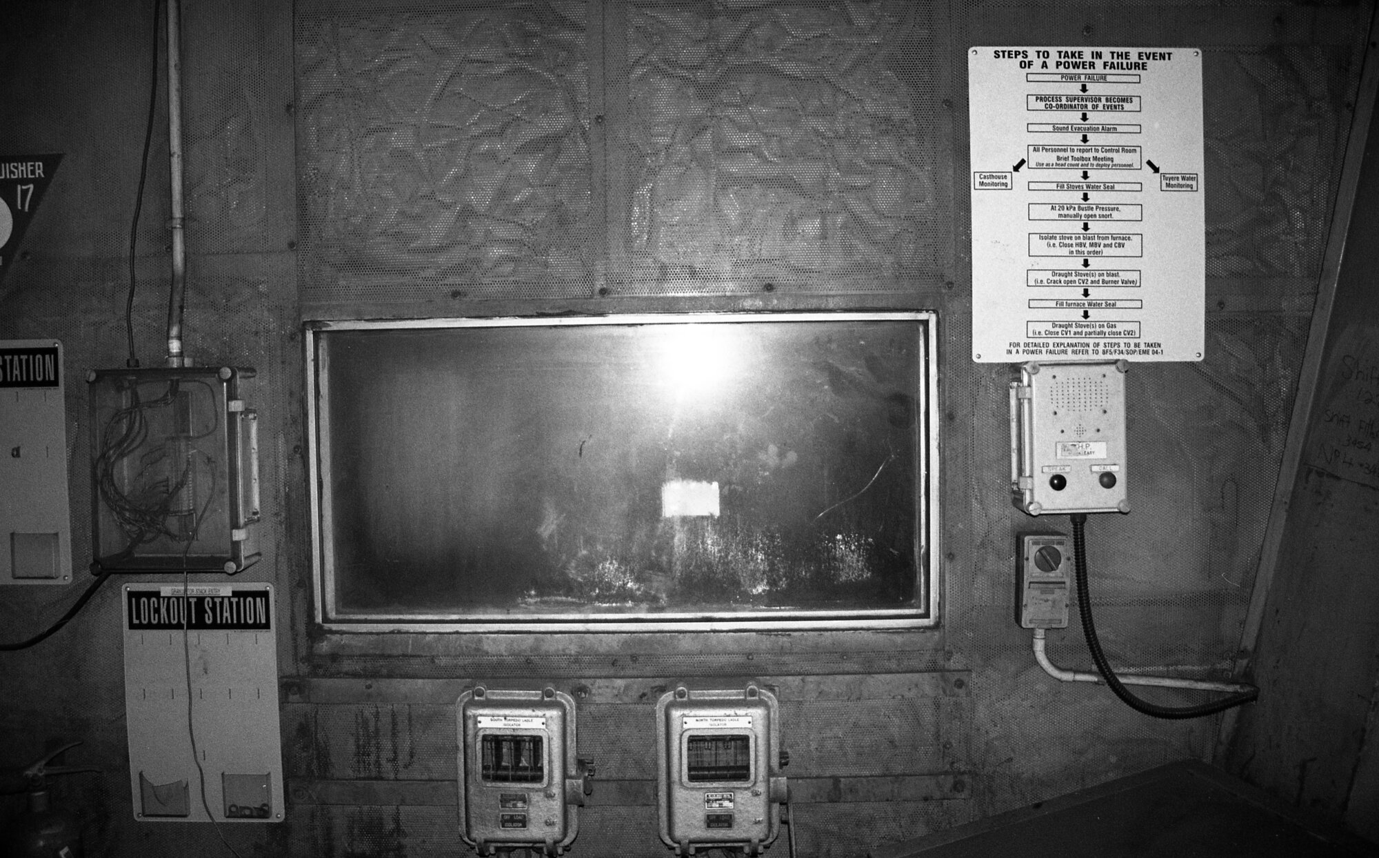 Ruddick, William, BHP Newcastle, No. 3 Blast Furnace, No. 1 Cast House, Mud Gun/Tap Hole Drill Control Cabin, 17th May 2000 (2000-05-17), [Ruddick_Roll_03_004]. Living Histories, accessed 23/01/2026, https://livinghistories.newcastle.edu.au/nodes/view/71445