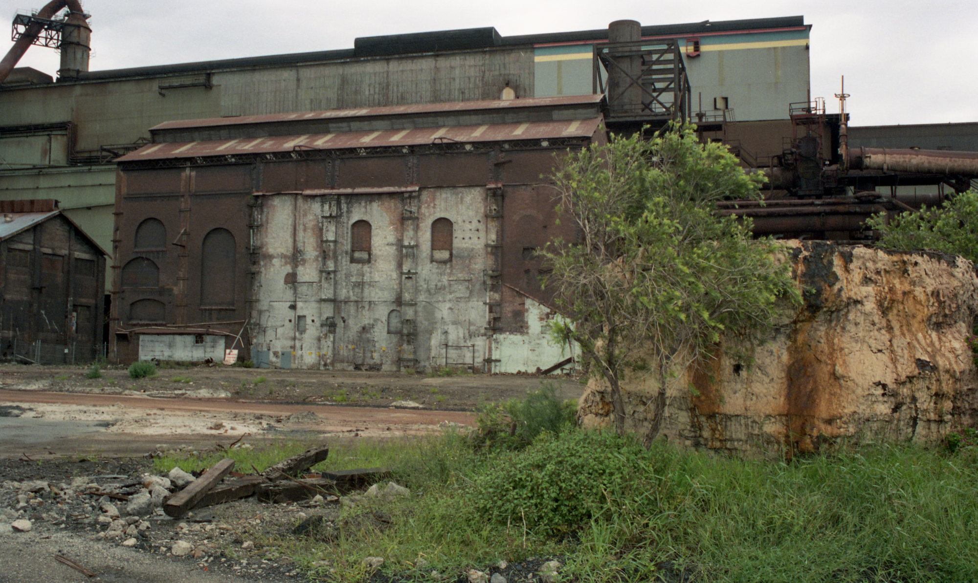 Original Blower House (left) with No. 1 Blast Furnace 'Stump' (right), BHP Newcastle, February 2002