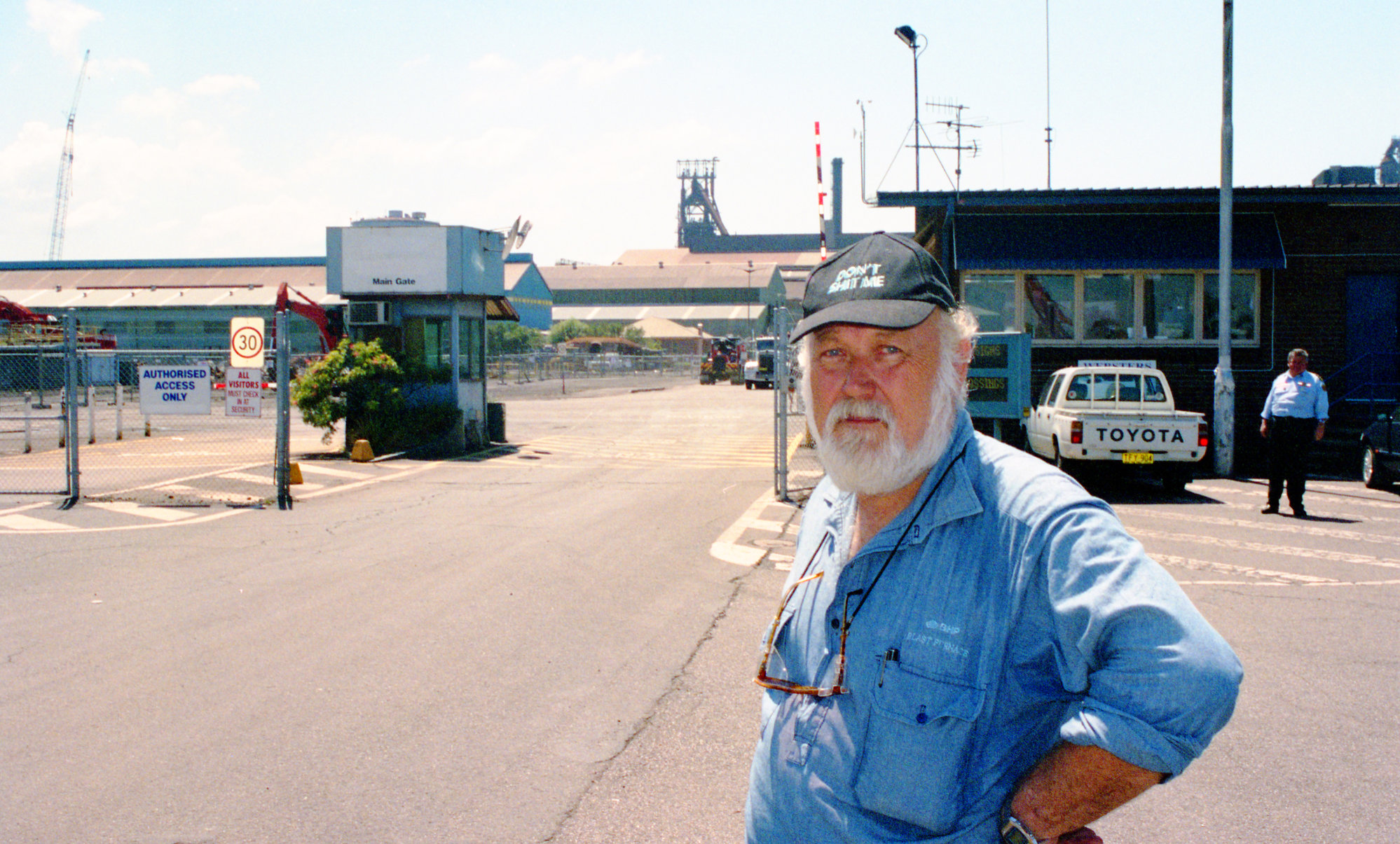 Ruddick, William, Frank Kadlec at the Main Gate, Selwyn Street, NIHA Tour, BHP Newcastle, 27th February 2002 (2002-02-27), [Ruddick_BHP_26_023]. Living Histories, accessed 20/03/2026, https://livinghistories.newcastle.edu.au/nodes/view/71815