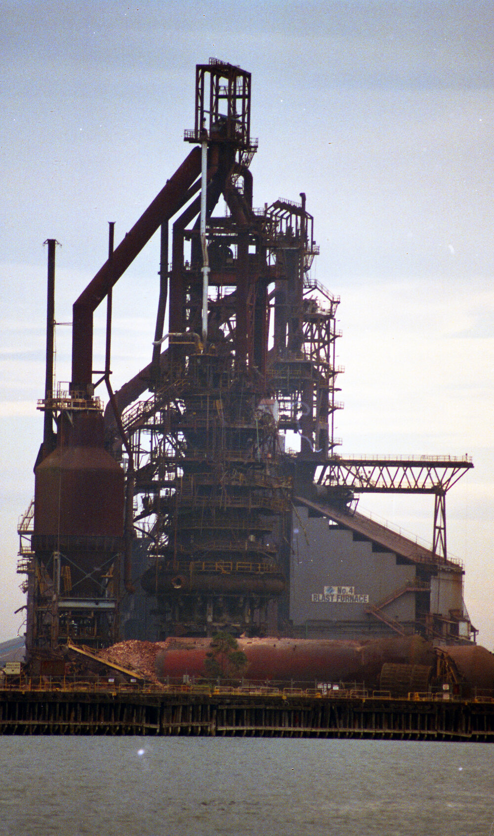 Ruddick, William, Nos. 3 & 4 (rear) Blast Furnaces, BHP Newcastle, view from Kooragang Island, 21st September 2003 (2003-09-21), [Ruddick_BHP_42_003]. Living Histories, accessed 19/03/2026, https://livinghistories.newcastle.edu.au/nodes/view/71890