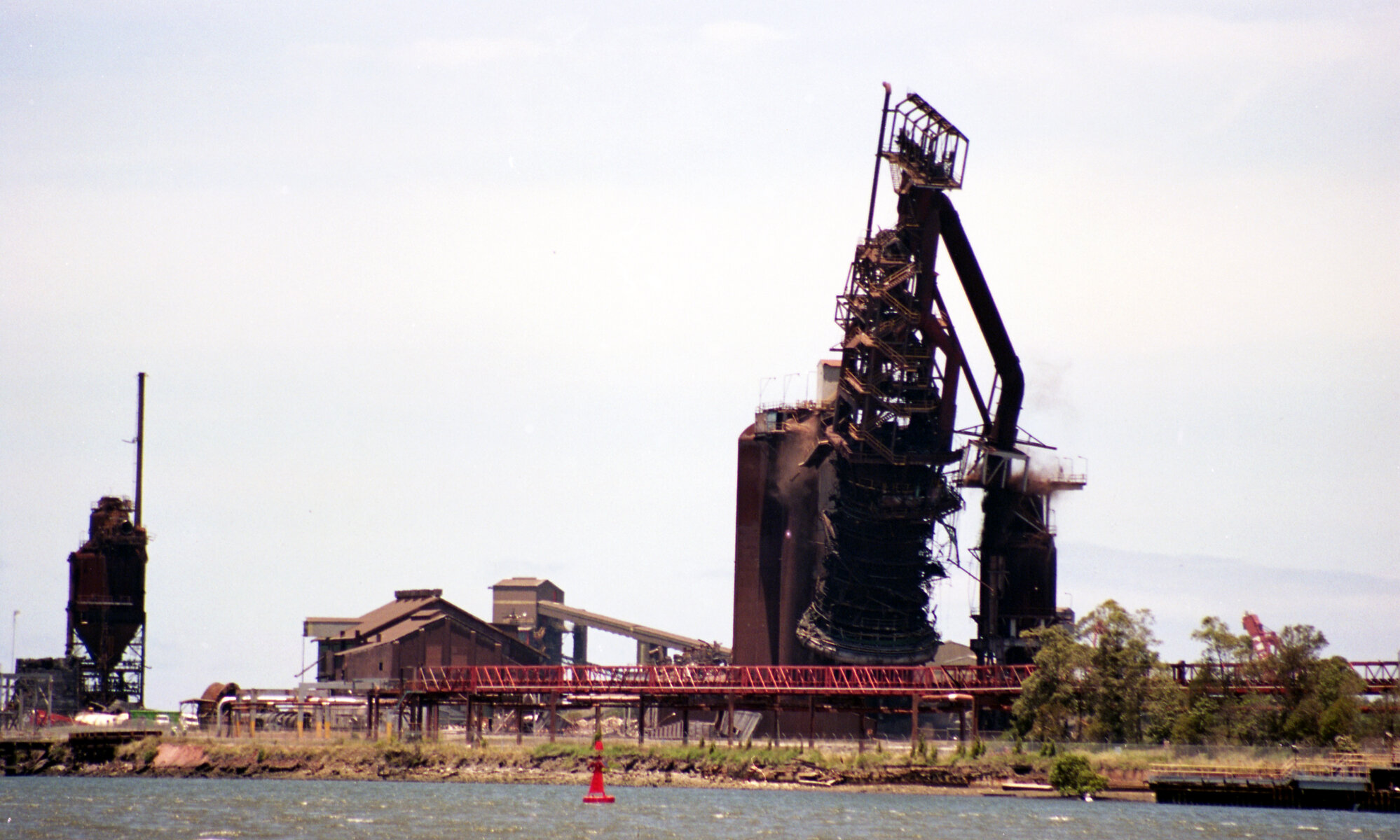 Ruddick, William, No. 4 Blast Furnace, BHP Newcastle, Demolition, from Kooragang Island, 9th December 2003 (2003-12-09), [Ruddick_BHP_44_004]. Living Histories, accessed 15/02/2026, https://livinghistories.newcastle.edu.au/nodes/view/71929