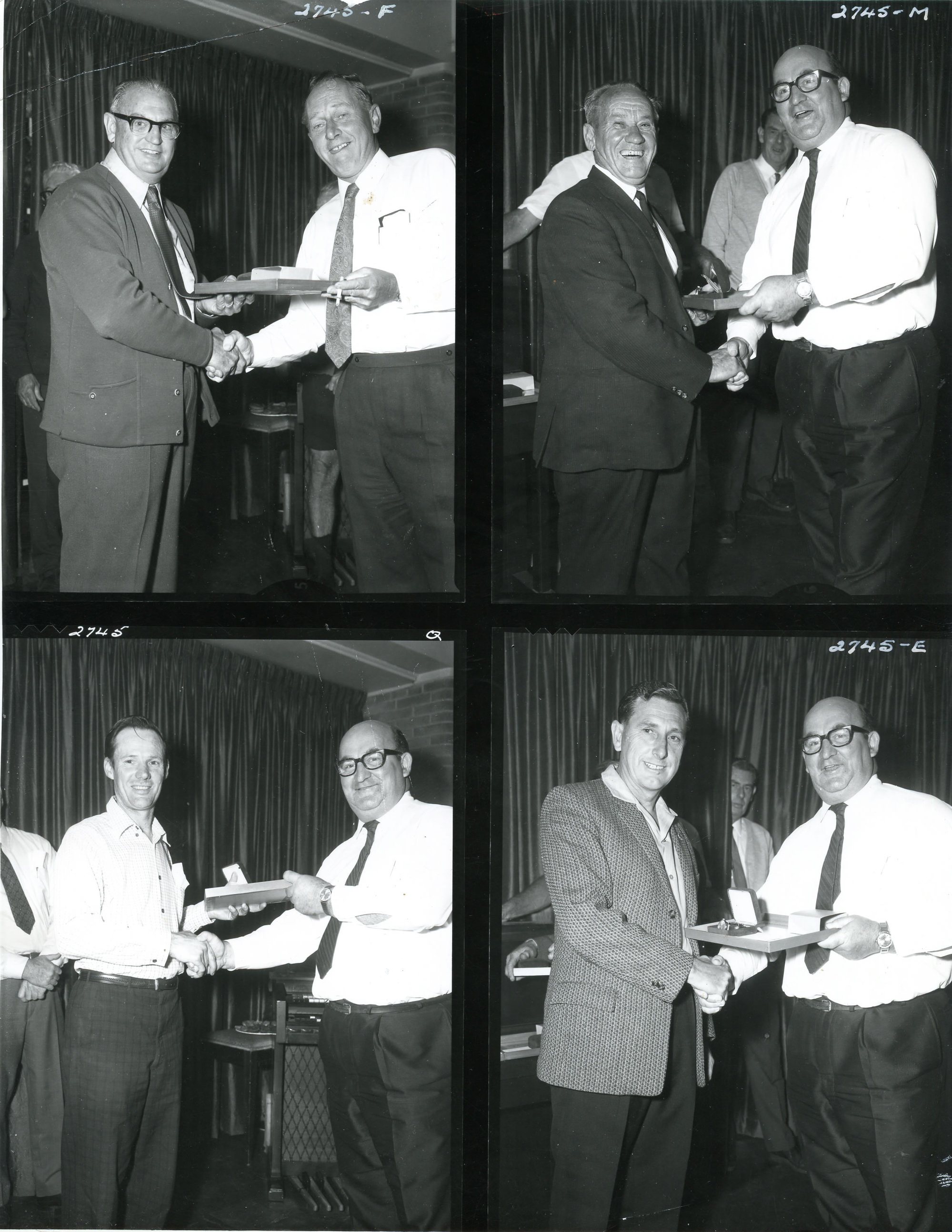 Photographs of Presentations for 25 Years Service, Stan Dowey on left in top right photo