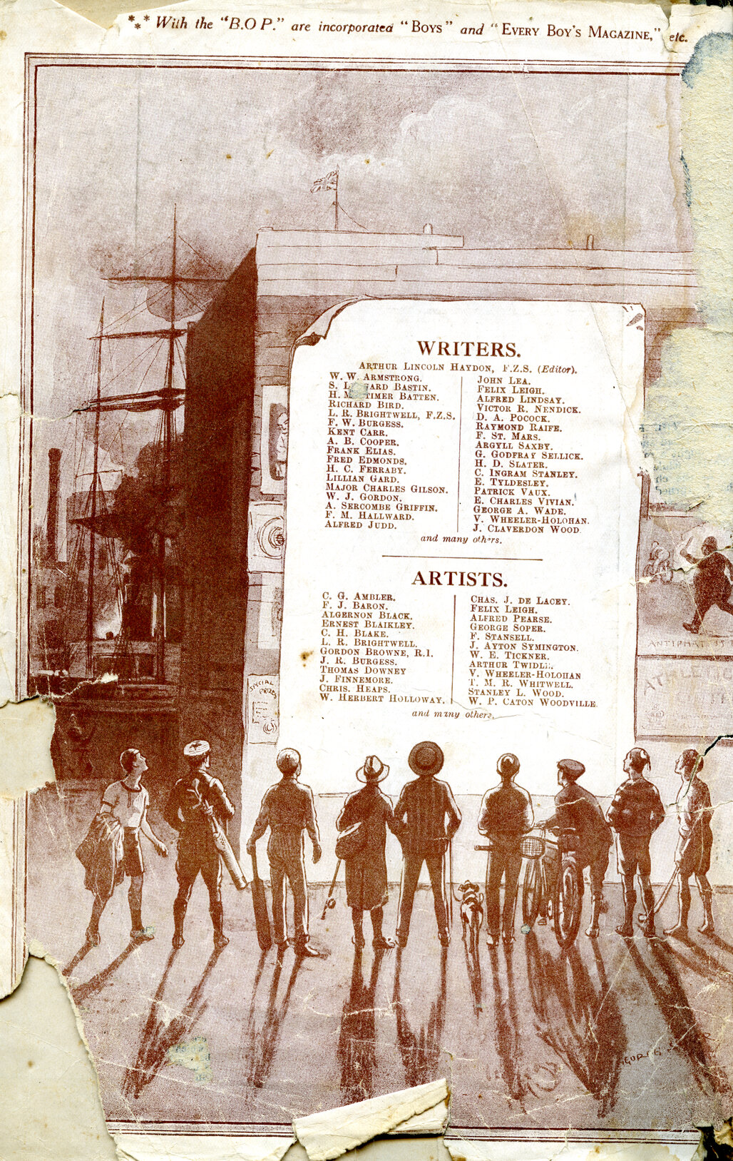 The Boy's Own Annual Inside cover detailing Writers and Artists