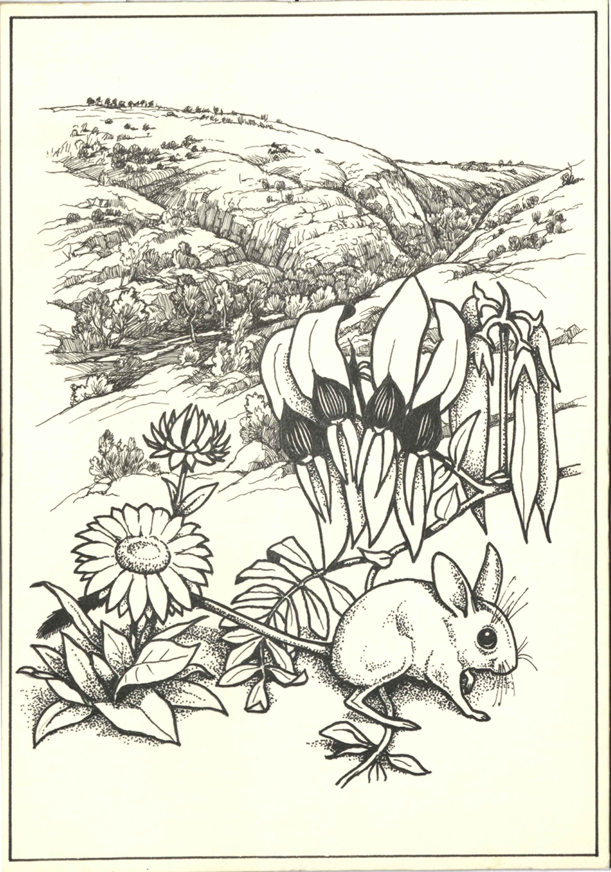 Senior, Margaret, 1917-1995, Landscape with desert pea and small marsupial, [MS1091]. Living Histories, accessed 15/04/2026, https://livinghistories.newcastle.edu.au/nodes/view/72785
