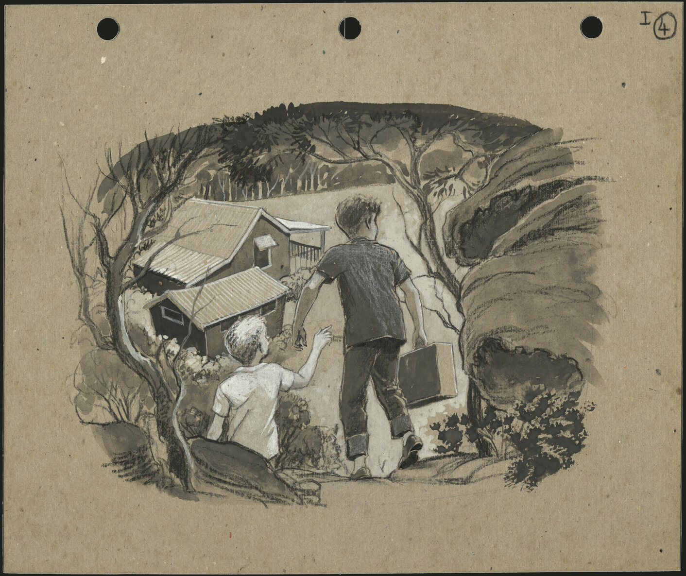 Senior, Margaret, 1917-1995, Untitled (Pt I (4)) (Two boys coming home), [MS1303]. Living Histories, accessed 19/03/2026, https://livinghistories.newcastle.edu.au/nodes/view/73020