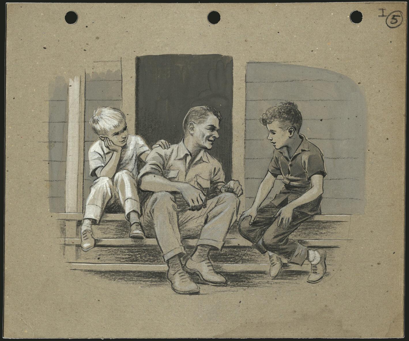Senior, Margaret, 1917-1995, Untitled (Pt I (5)) (Two boys and a man), [MS1304]. Living Histories, accessed 16/04/2026, https://livinghistories.newcastle.edu.au/nodes/view/73021