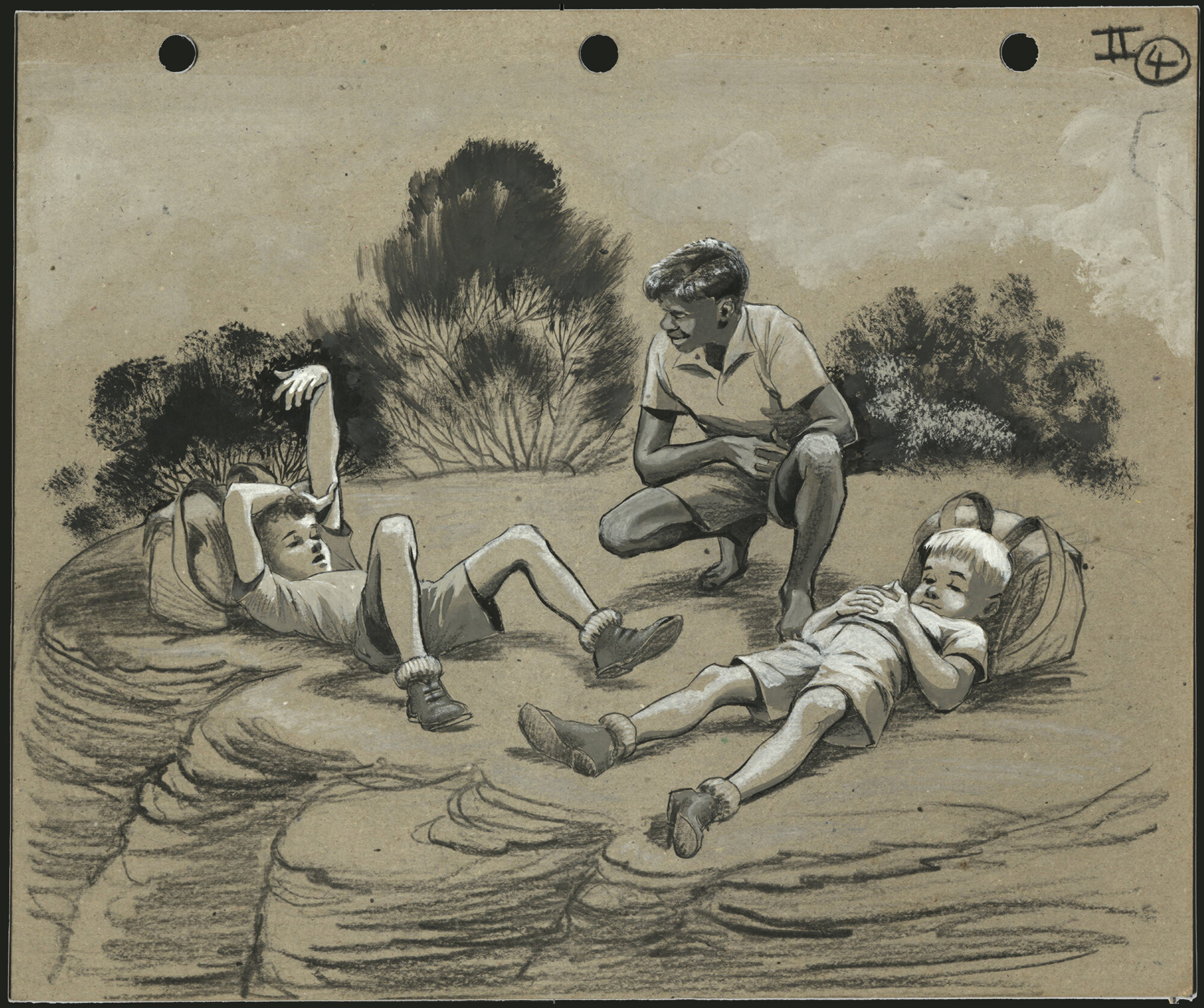 Senior, Margaret, 1917-1995, Untitled (Pt II (4)) (Three boys resting), [MS1314]. Living Histories, accessed 14/03/2026, https://livinghistories.newcastle.edu.au/nodes/view/73031